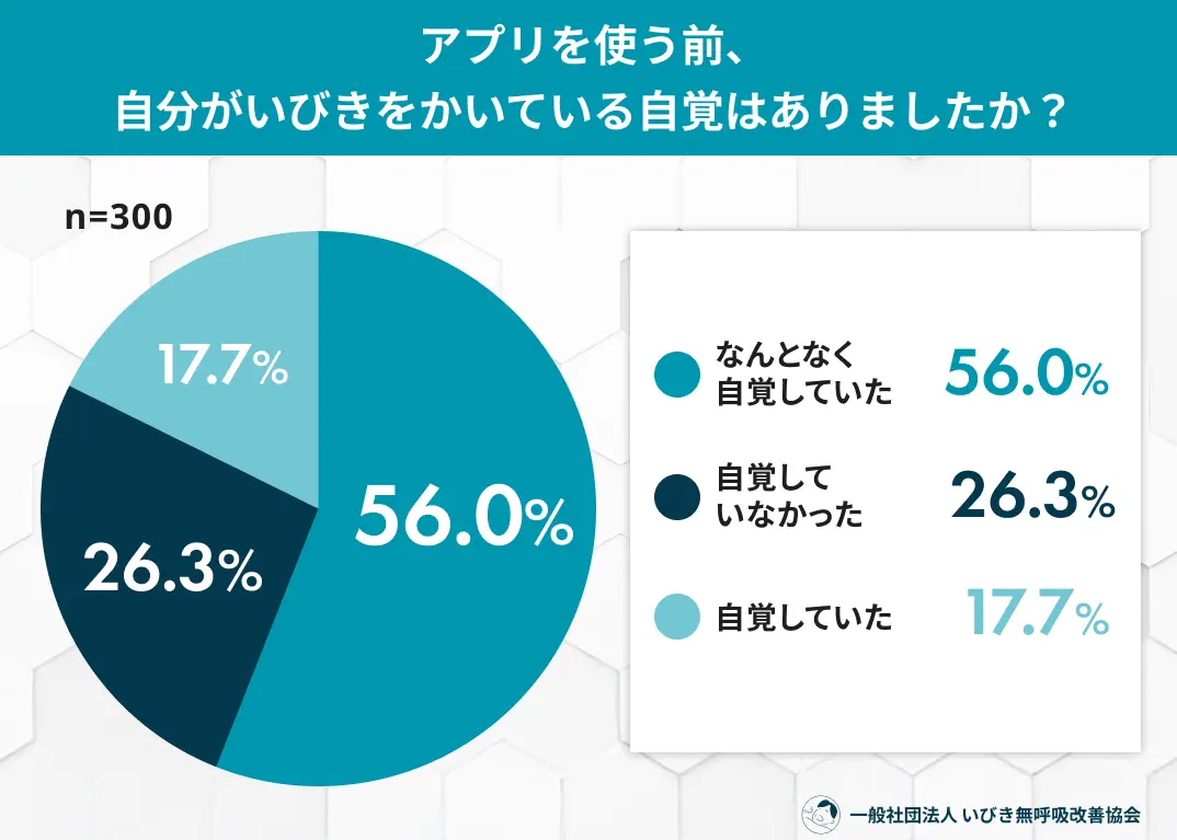 • 約4人に1人(26.3%)が、アプリを使うまで自分がいびきをかいている「自覚がなかった」