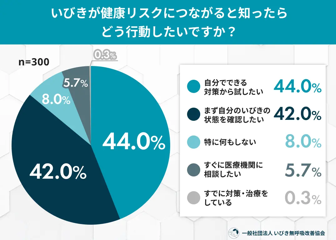 今回の調査により、多くの人がいびきを自覚しながらも、それを「ただの音」や「一時的な疲れ」として片付けてしまい、医療機関への相談を後回しにしている実態が明らかになりました。特に、脳卒中や高血圧といった命に関わるリスクとの関連性が十分に認知されていないことが、受診ハードルを高くしている要因と考えられます。一方で、正しい知識を得ることで「まずは確認したい」「対策をしたい」という意向が急増することから、セルフチェックや啓発活動の重要性が浮き彫りになりました。