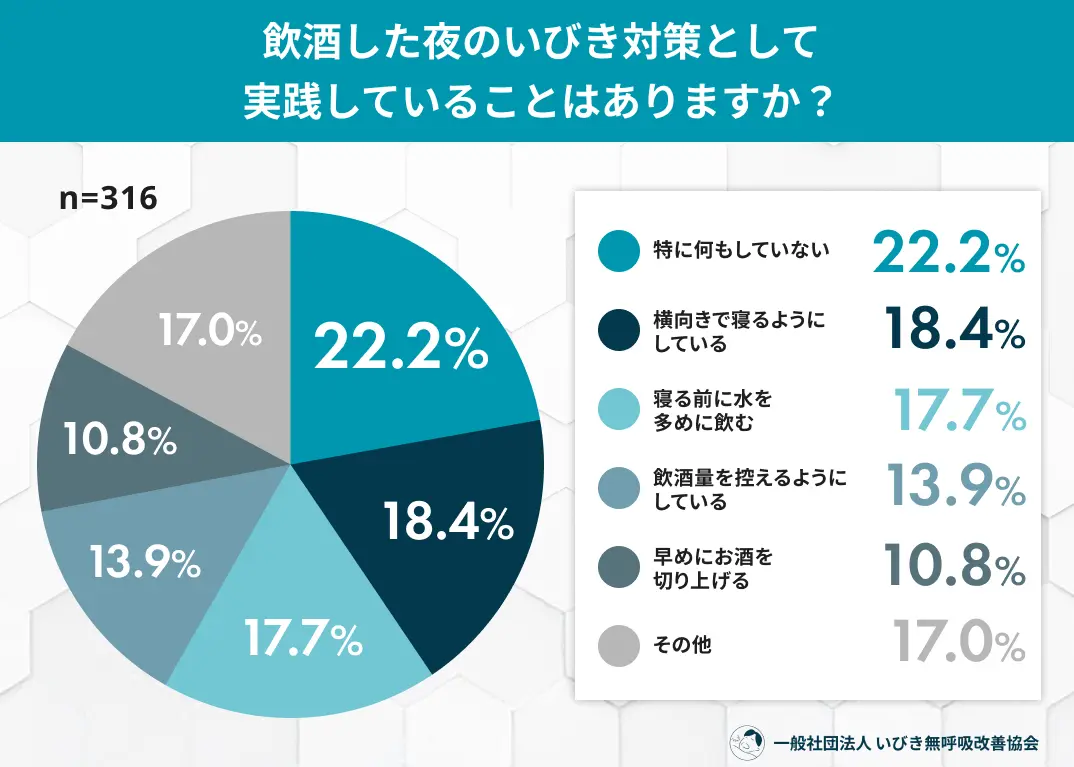 飲酒後の「いびき悪化」自覚する人は5割を超えるも、4人に1人が対策を講じず
