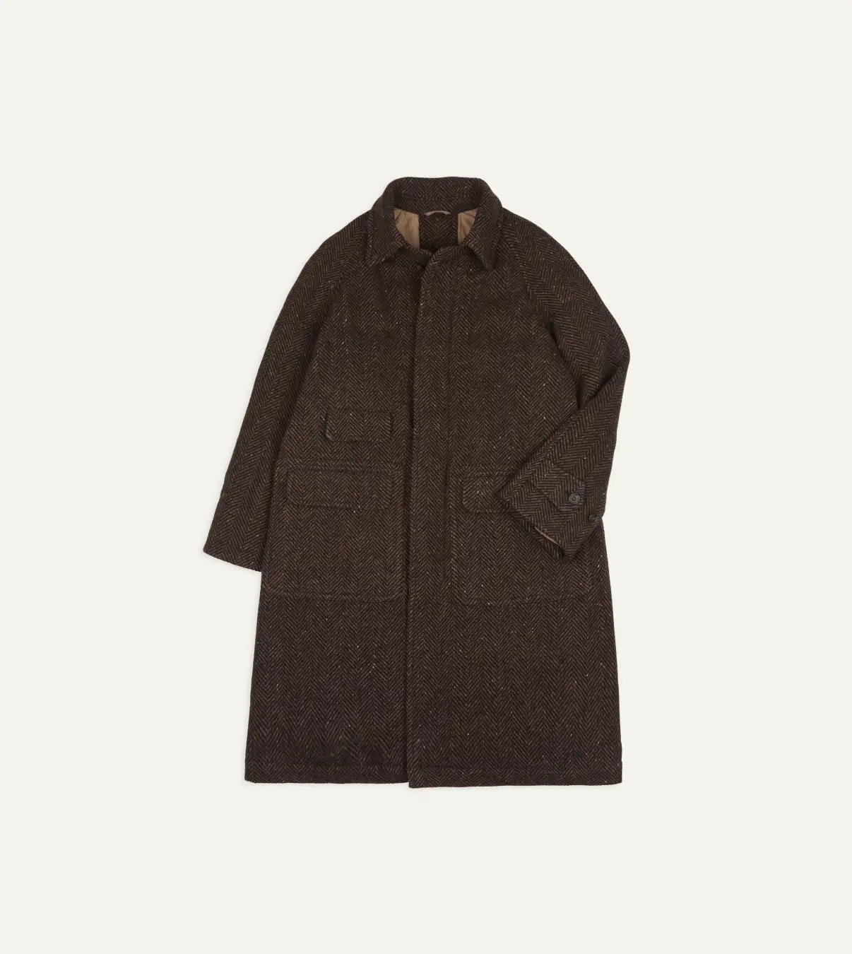 バージンウールのヘリンボーン生地を使用したラグラン仕様。