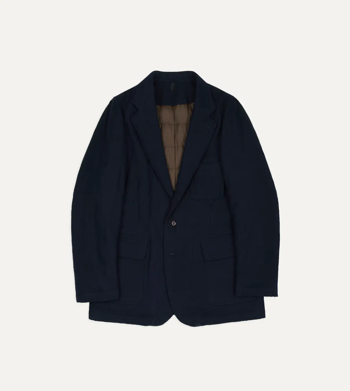 裏地にはスペイン産ダックダウンを封入したナイロンタフタのキルティングを採用し、上品な表情と高い保温性を両立しています。