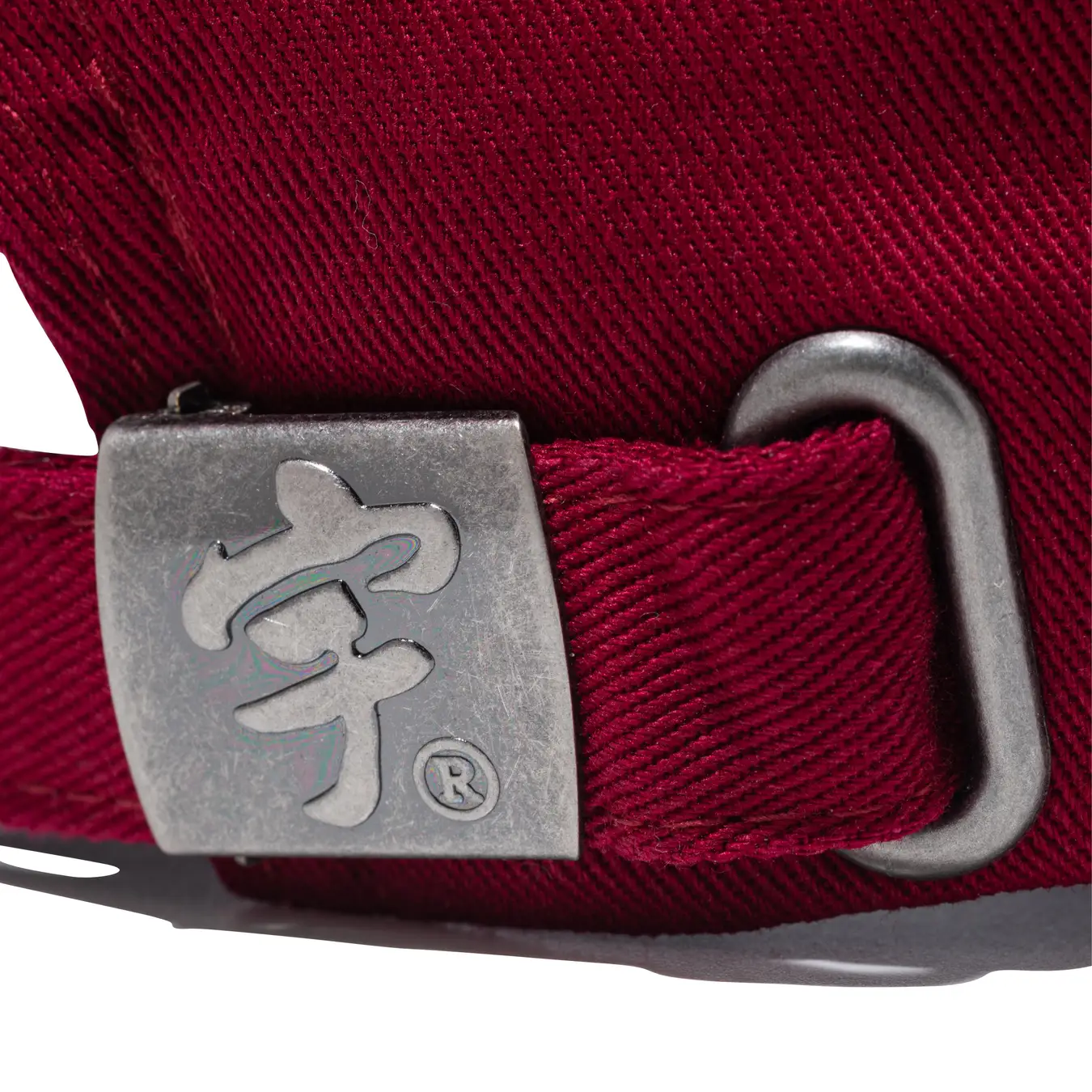 筆文字の “宇”を立体刺繍でフロントに配し、ストラップのバックルにも同モチーフをデザイン。細部まで作り込まれたモデルです。