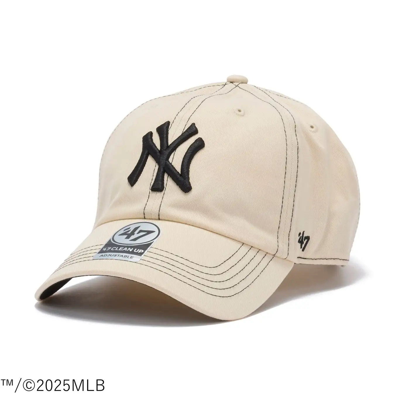 CLEAN UPは、頭の形やスタイリングを問わず誰でもかぶりやすい定番のシルエットとして広く支持されています。今回の新作では、ナチュラルホワイトにはブラックステッチを、ブラウン・ピンク・カーキ・ネイビー・ブラックにはホワイトステッチを採用することで、ボディカラーとステッチカラーの組み合わせによる自然なメリハリが生まれ、すっきりとした印象にほどよい表情を添えています。さらにフロントには、MLB(メジャーリーグ・ベースボール)の人気球団であるニューヨーク・ヤンキースのロゴをあしらい、日常のコーディネートにも取り入れやすいデザインに仕上げました。