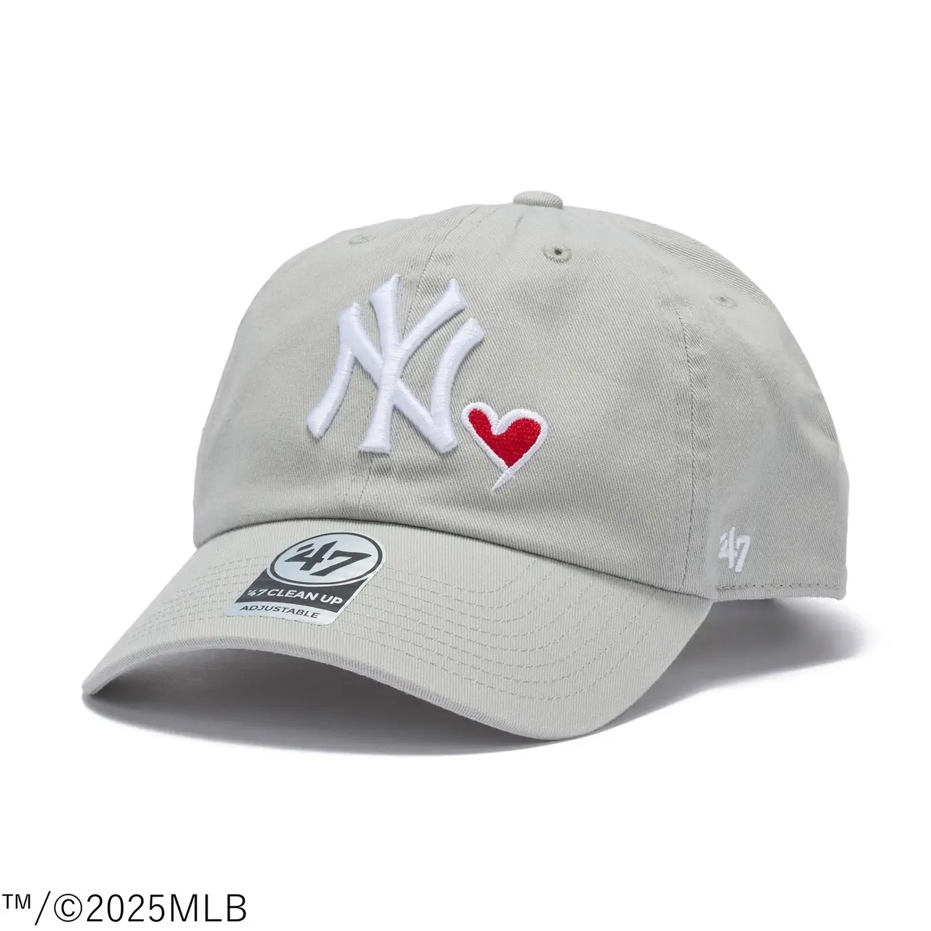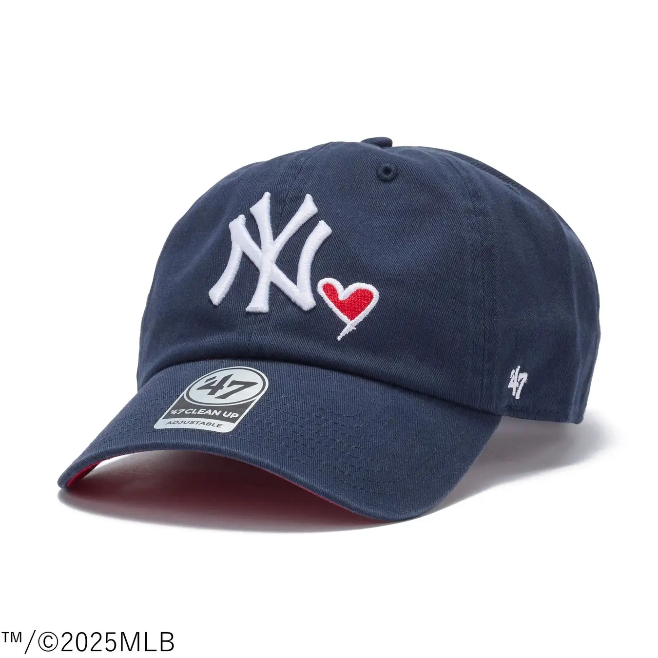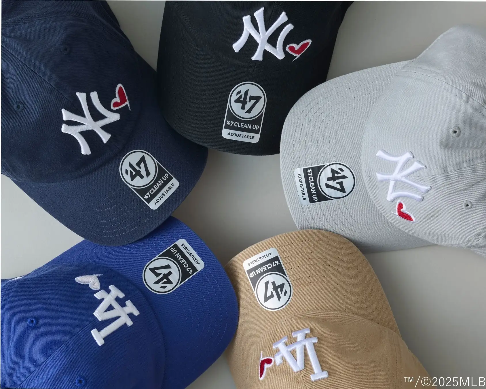 1947年に米国ボストンでスタートしたカジュアルライフスタイルブランドである’47(フォーティーセブン)は、ブランドを代表する定番シルエット「CLEAN UP(クリーンナップ)」の新作として、MLB(メジャーリーグ・ベースボール)のニューヨーク・ヤンキースおよびロサンゼルス・ドジャースの球団ロゴにハートアイコンを組み合わせたデザインのキャップを、公式オンラインストア’47長野をはじめ全国の’47取扱店舗にて発売いたしました。