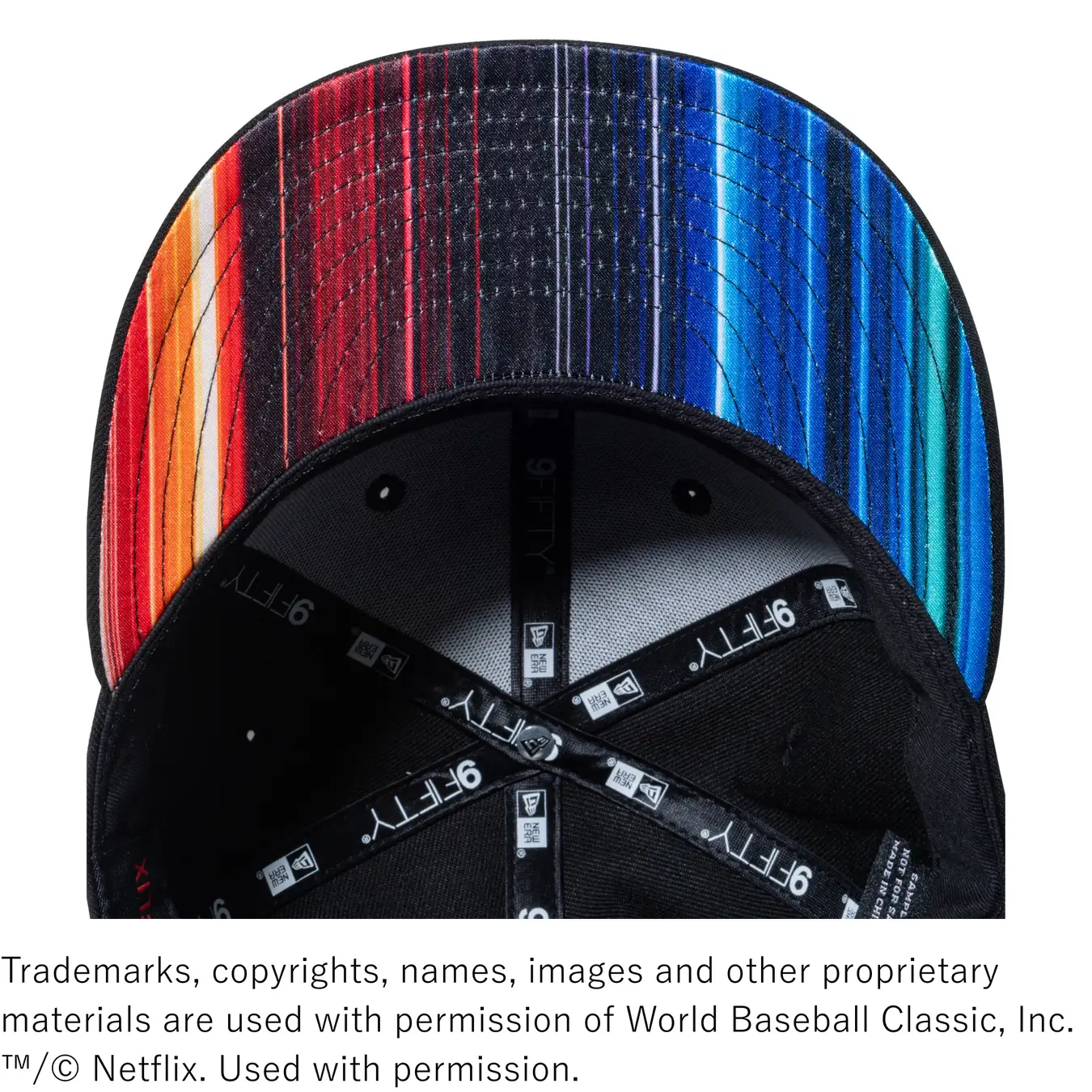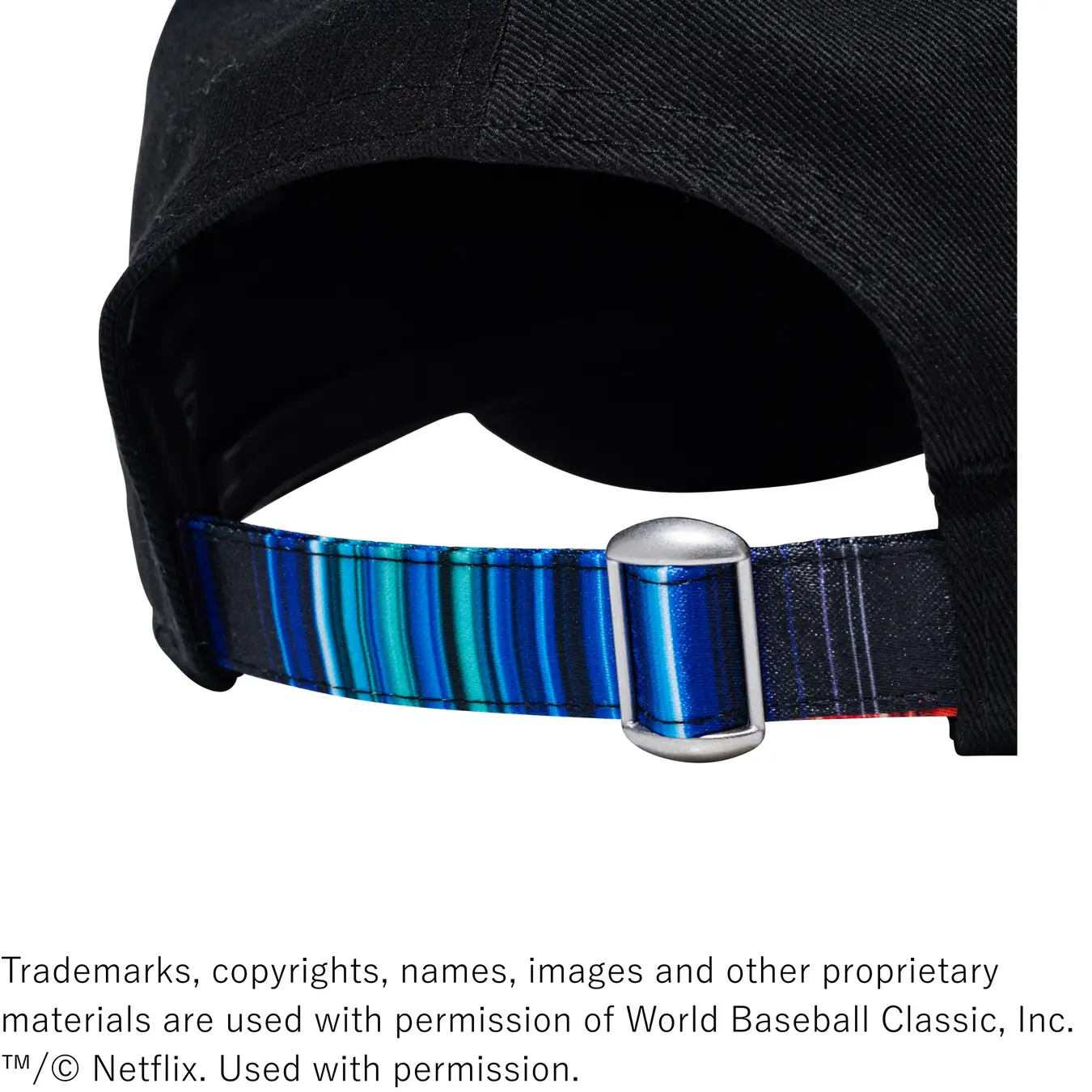 各アイテムには、Netflixおよび2026 World Baseball Classic™のロゴを配し、さらにNetflixを象徴するストリームラインをデザインのアクセントとして取り入れています。立体的なフォルムとアジャスタブル仕様による安定したフィット感が特長の[9FIFTY™(ナインフィフティー)]にはアンダーバイザー(つば裏)にストリームラインを配し、芯のない構造で柔らかな被り心地が特長の[9THIRTY™(ナインサーティ)]にはリアのアジャスター部分に同デザインをあしらっています。