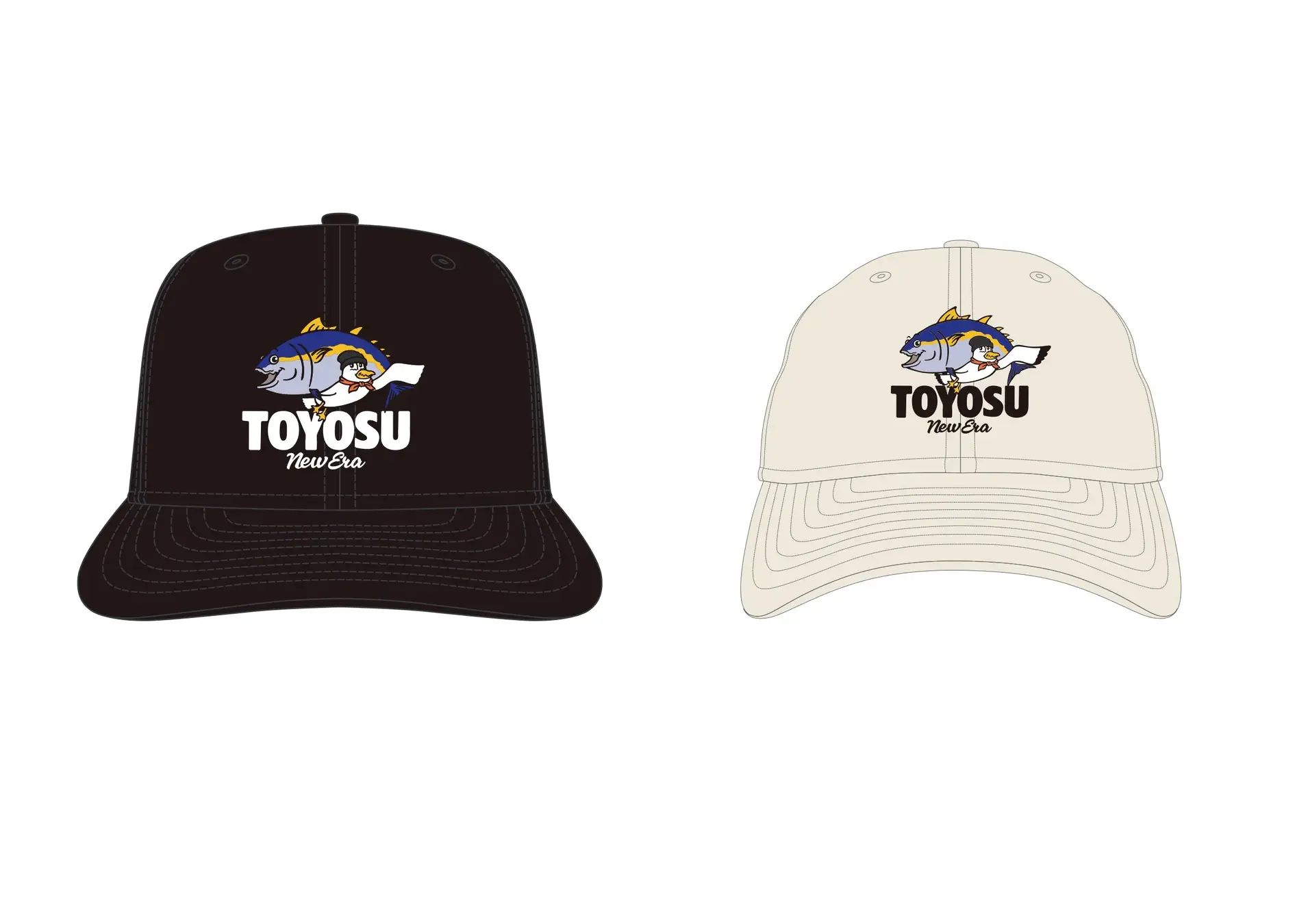 オープンを記念して、「ニューエラ豊洲」限定デザインのキャップおよびサイドパッチを発売いたします。豊洲市場を象徴する「マグロ」と、海辺に生息する鳥であり、東京臨海新交通臨海線の愛称としても親しまれている「ゆりかもめ」をモチーフにしたデザインです。地域性とストーリー性を併せ持つ意匠となっており、詳細は追ってニューエラ公式SNSにてお知らせいたします。