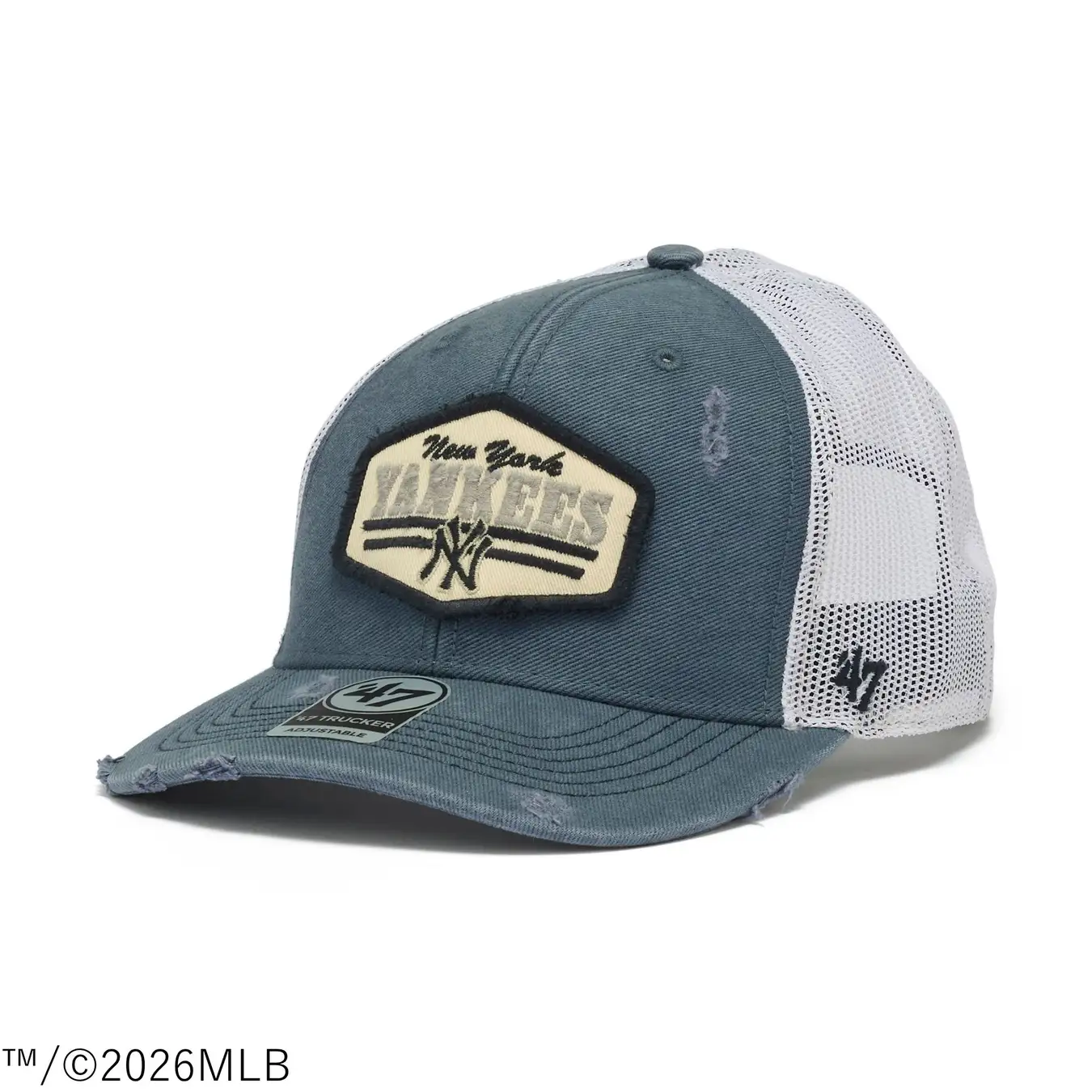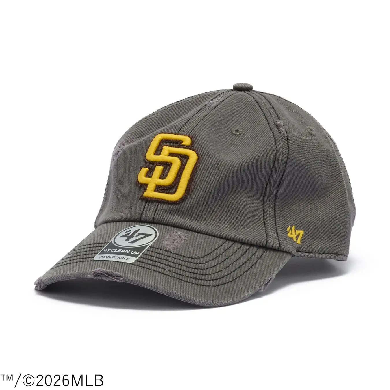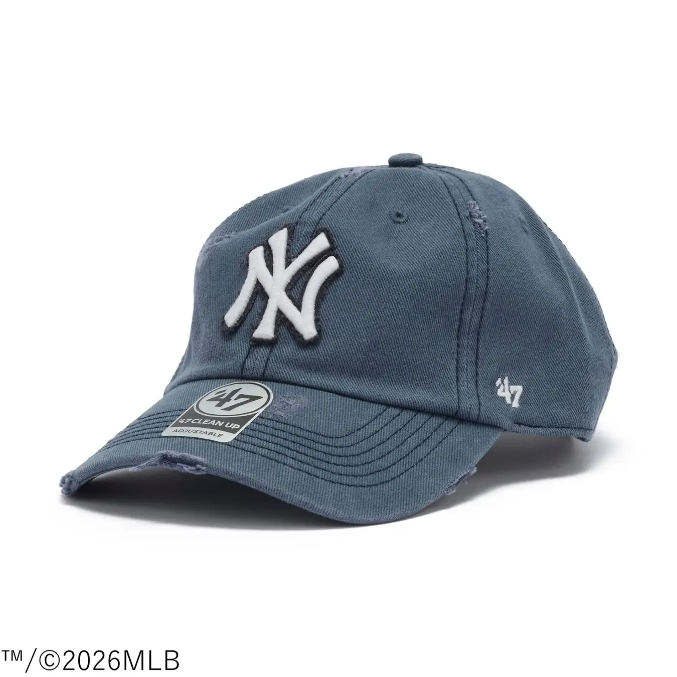 カラーはブルー系、レッド系、チャコールグレー系を中心に展開。落ち着いた色合いとディストレス加工の表情が調和し、幅広いスタイリングに取り入れやすいデザインです。ニューヨーク・ヤンキース、ロサンゼルス・ドジャース、サンディエゴ・パドレス、ボストン・レッドソックス、シカゴ・カブスなどMLB球団のロゴを採用し、クラシックなチームロゴとヴィンテージライクな加工が組み合わさり、スポーツカルチャーとファッションの魅力を感じられるコレクションに仕上げています。