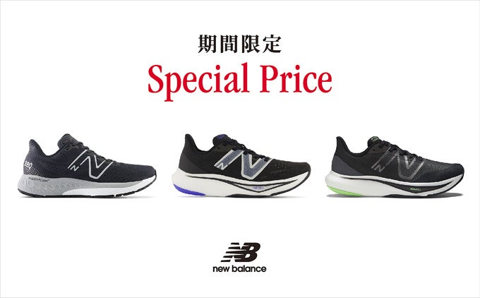 期間限定で、対象のランニングシューズをスペシャルプライスにて販売いたします。究極のクッション性を追求する人気のFresh Foamやスピード走行をサポートするFuelCellもご用意。