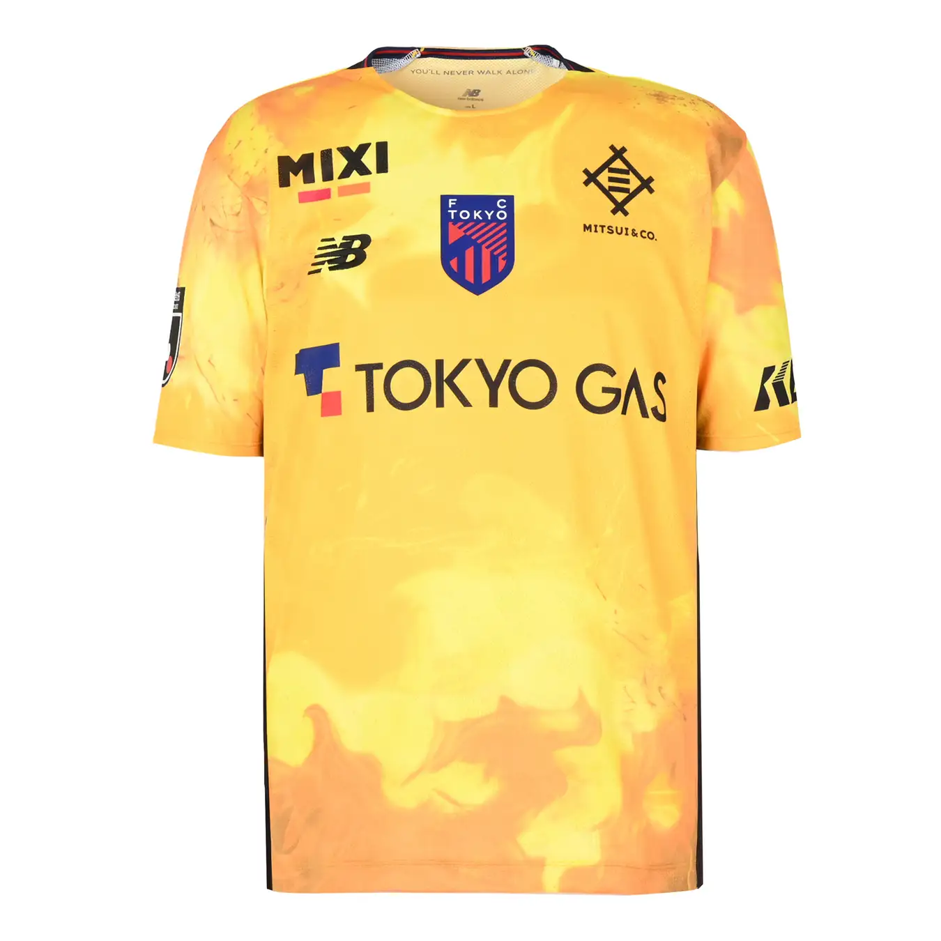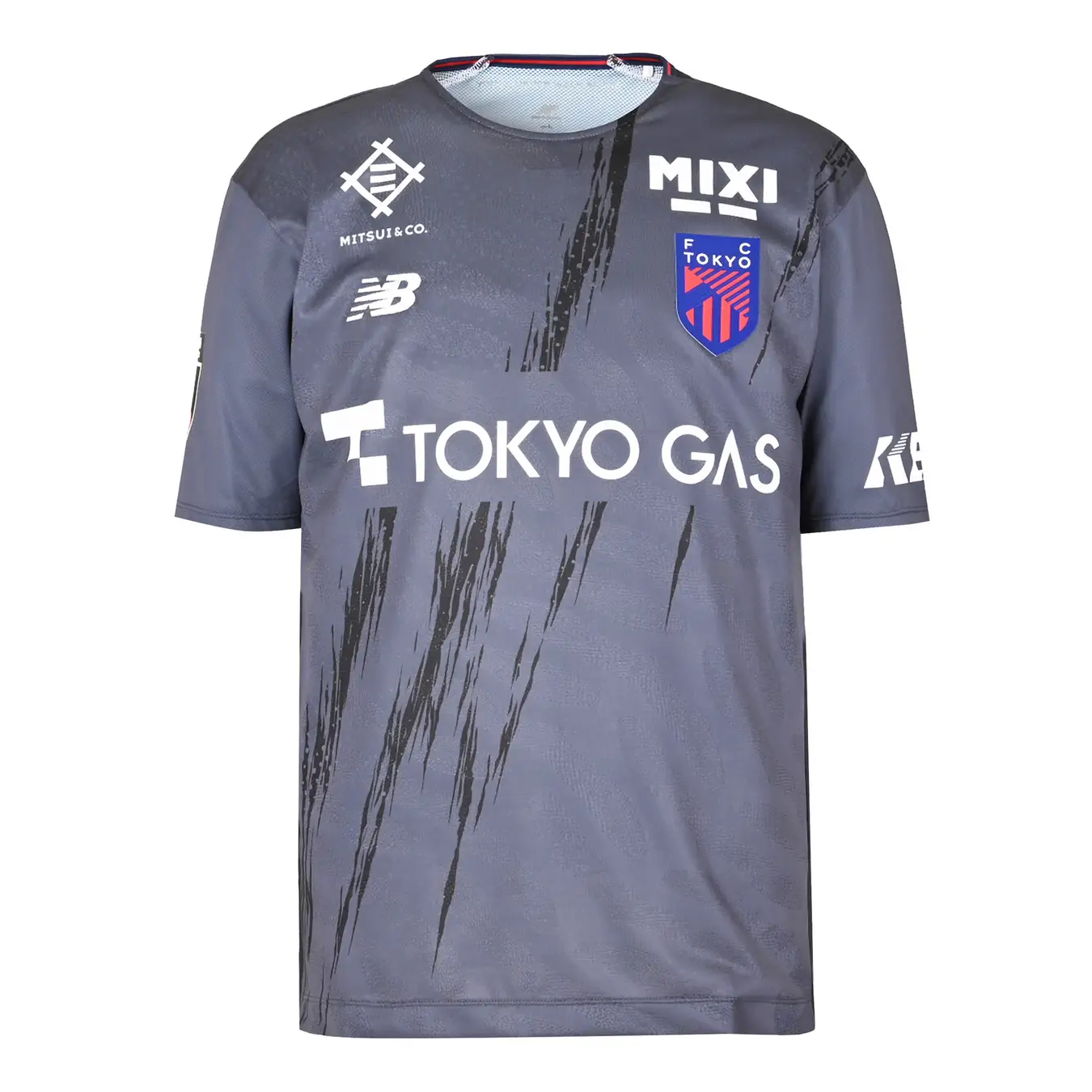 1st KITにはクラブスローガンである『東京が熱狂』を表した、躍動する“炎”をモチーフとしたデザイン。青い炎は冷静さ、安定感、赤い炎は、情熱を表現し、ストライプデザインの枠を超えて、両方の炎が合わさる事で、強さ・勢いを象徴しています。