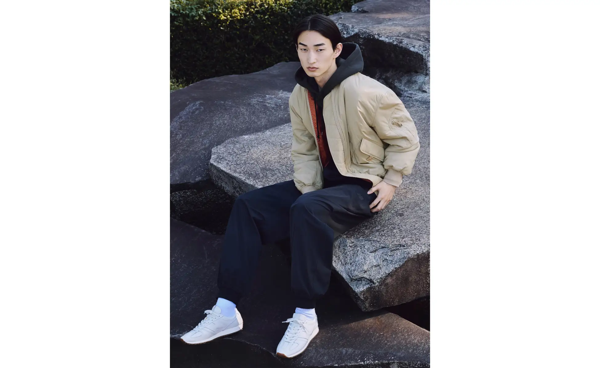 スポーツとカルチャーが交差し、混ざり合うように、スポーツウエアが持つ機能性とファッションがもたらす自由な表現が交差するコレクションは、ニューバランスのシューズと調和するようにデザイン。洗練されたデザインや上質さが都市生活にとけ込みます。