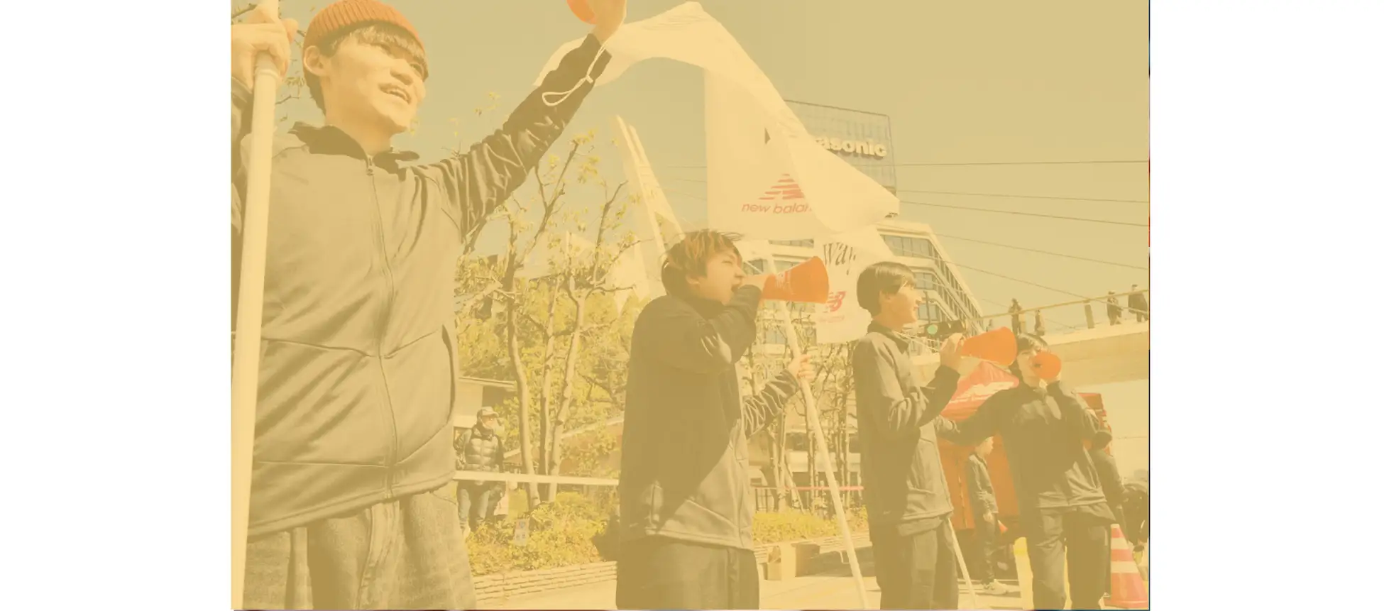 レース当日、フルマラソンのフィニッシュまで残り7キロ地点となる35㎞の桜通久屋西」交差点付近に、ニューバランスがプロデュースする応援スポットが登場します。緩やかな坂が始まる一番きついポイントに設置されたチアゾーンには、ブラスバンドやチアダンス、応援団による盛大な応援で、フィニッシュに向かうランナーを勇気づけます。
