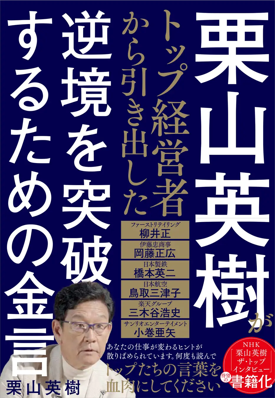 柳井 正、岡藤正広、橋本英二、鳥取三津子、三木谷浩史、小巻亜矢……日本が誇る企業のトップ経営者たちから栗山英樹が引き出す組織論・リーダー論! 『栗山英樹がトップ経営者から引き出した 逆境を突破するための金言』が1月26日、NHK出版より発売されます。