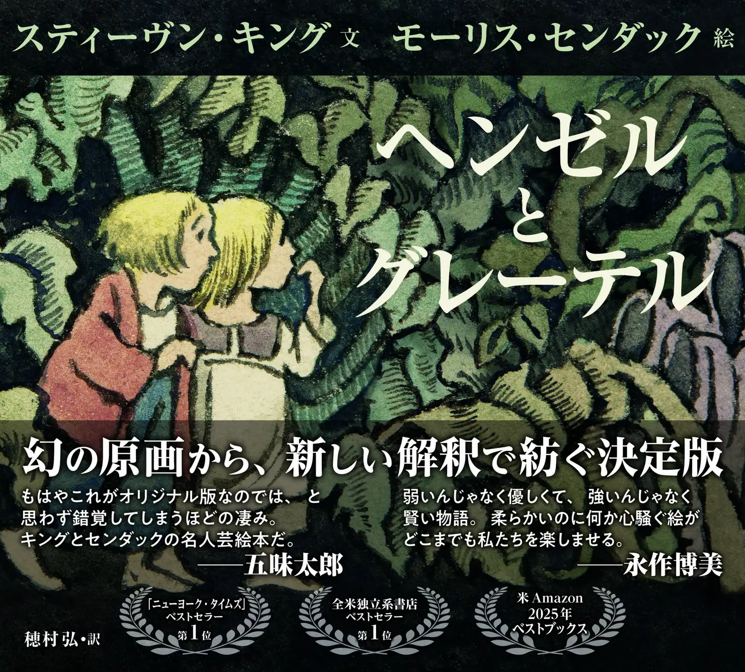 『かいじゅうたちのいるところ』を描いた20世紀を代表する絵本作家モーリス・センダックの幻の原画から、『シャイニング』『ダークタワー』『グリーン・マイル』など世界的ベストセラー作家のスティーヴン・キングが新しく紡ぐ『ヘンゼルとグレーテル』が2026年4月24日に発売となります。翻訳は現代を代表する歌人・穂村 弘という豪華コラボレーション絵本です。