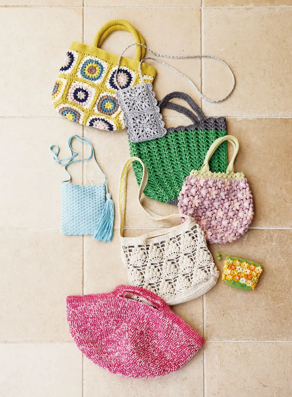 モチーフ編みのバッグや透かし模様の帽子、ストラップやバレッタ、ポーチなどの小物も。楽しく編めて、大人が持ちたいデザインのアイテムを、丁寧な解説つきで紹介します。