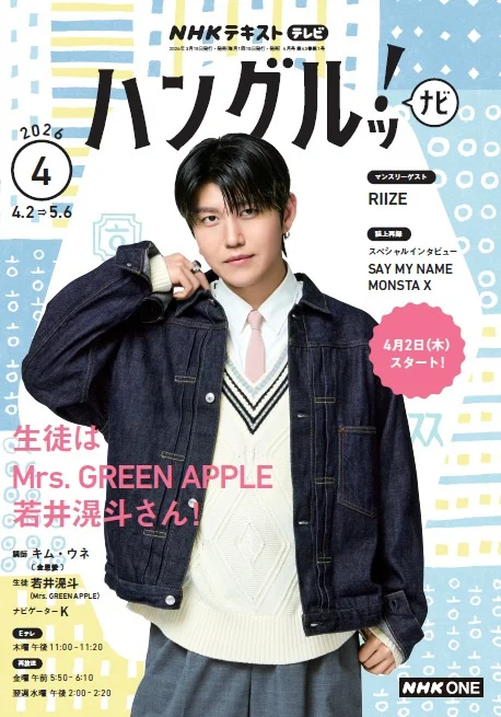 【緊急大増刷!】Mrs. GREEN APPLE 若井滉斗さんが生徒となる「ハングルッ!ナビ」テキスト4月号が本日発売!