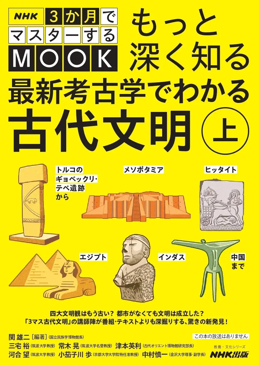 NHK出版から『NHK3か月でマスターするMOOK もっと深く知る 最新考古学でわかる古代文明 上』が2026年3月25日に発売されます。文明の始まりを示すトルコのギョベックリ・テペ遺跡から、メソポタミア、ヒッタイト、エジプト、インダス、中国までを、各地域の最前線で活躍する研究者が徹底的に解説します。