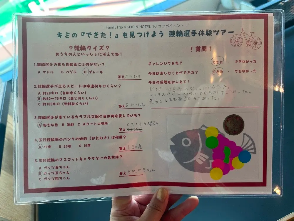 日本初のスタジアム一体型ホテル「KEIRIN HOTEL 10 by 温故知新」(以下、KEIRIN HOTEL 10)(所在地:岡山県玉野市)は、株式会社天満屋(所在地:岡山県岡山市)が運営する体験型家族旅行サービス「Family Trip」と連携し、2025年11月23日(日)に、親子向けイベント「キミの『できた!』を見つけよう 競輪選手体験ツアー」を開催いたしました。