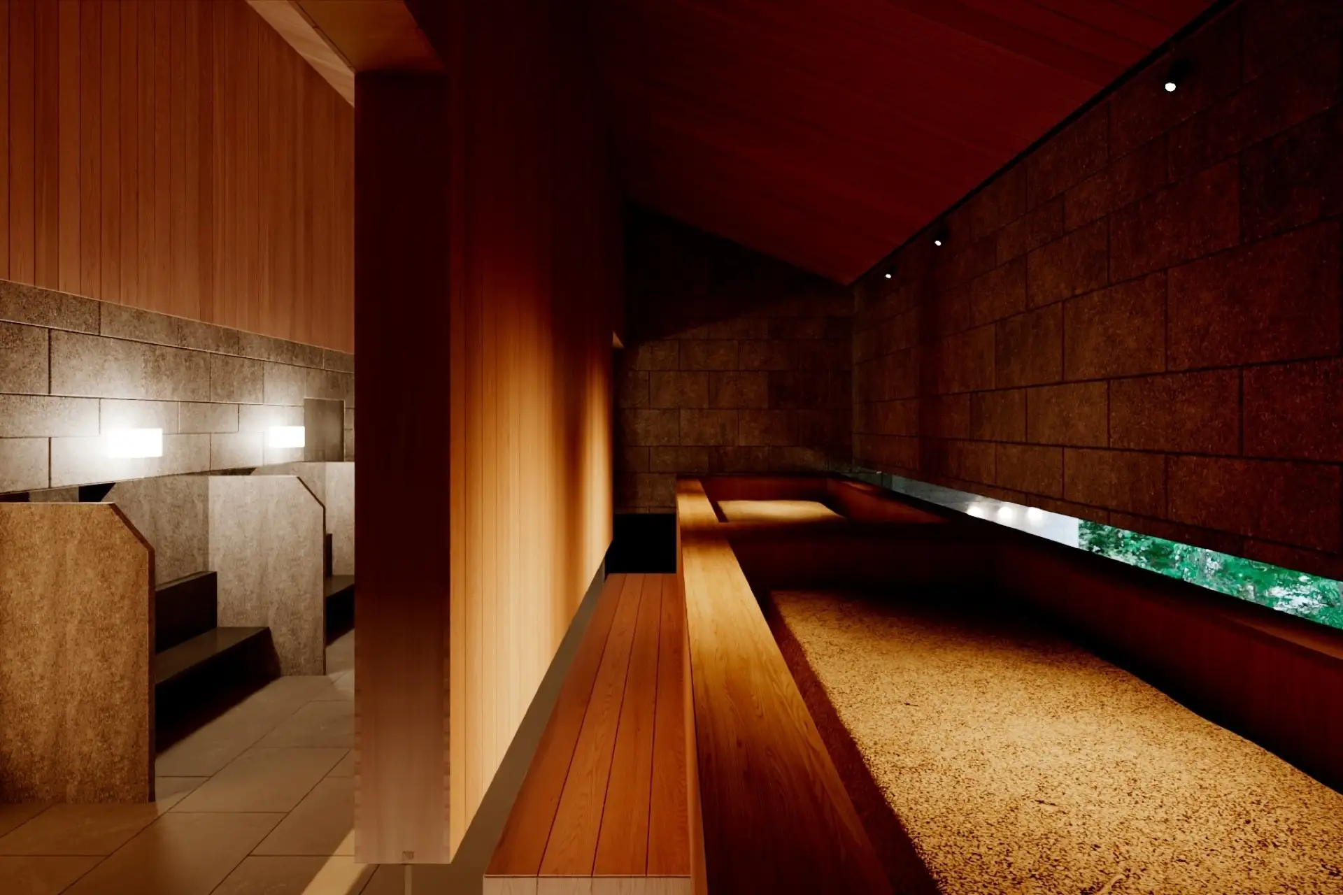 従来の大浴場露天風呂を残し、サウナを新設、内湯は水風呂へとしつらえました。