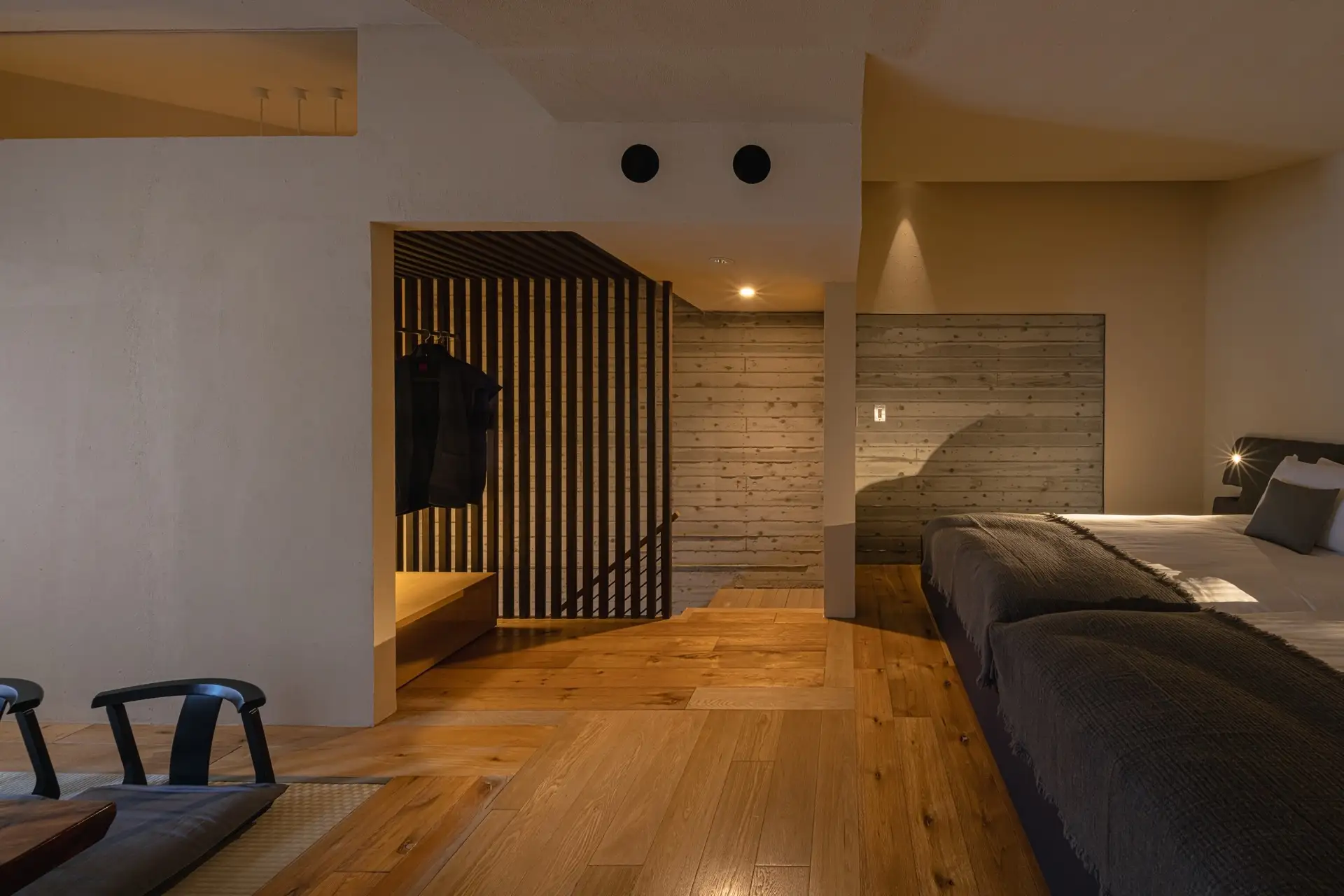 改装に際し、中山眞琴氏が客室にあわせてソファやベッドをデザイン。和が持つ美しさや閑けさ、さりげなさはそのままに、より現代のライフスタイルにあわせた客室となりました。