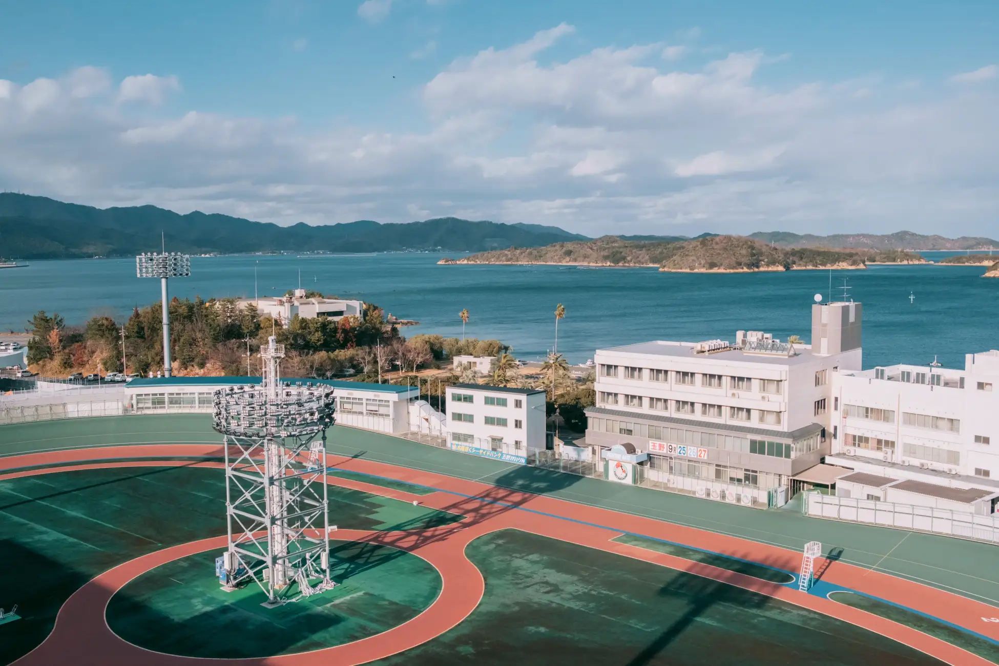 直島への玄関口・宇野港まで車で約5分という立地を活かし、競輪場と瀬戸内海を望む唯一無二の景観の中で、仕事・旅・休息が自然につながる非日常の滞在を叶えます。