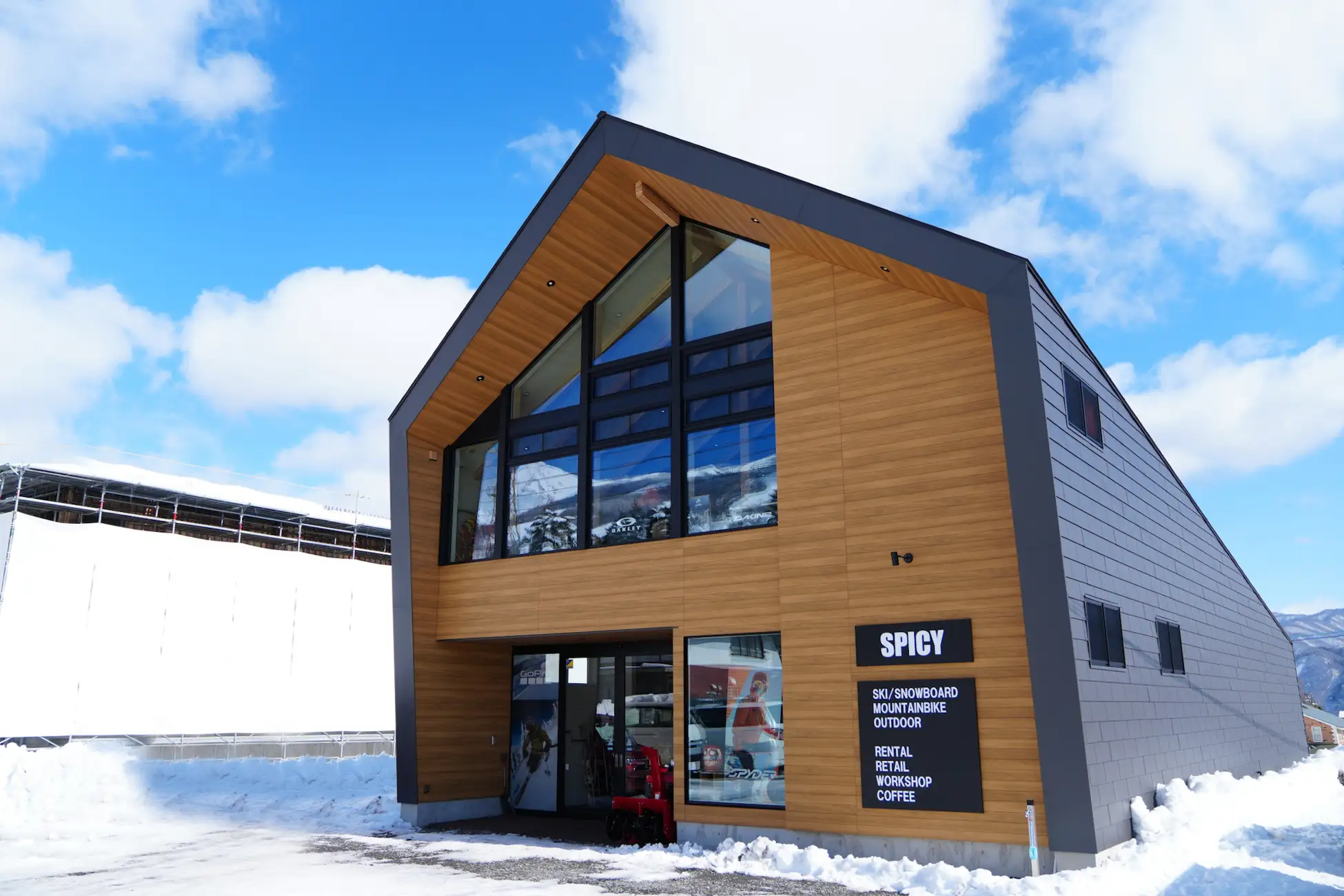 スキー・スノーボードのレンタルショップ。白馬村・エコーランド中心に位置し、初心者から上級者まで幅広いニーズに対応する豊富なギアを取り揃えています。1Fはレンタルとコーヒースタンド、2Fでは物販を取り扱う。夏季は自転車のレンタルやキャンプ・BBQ用品レンタルも実施しています。
