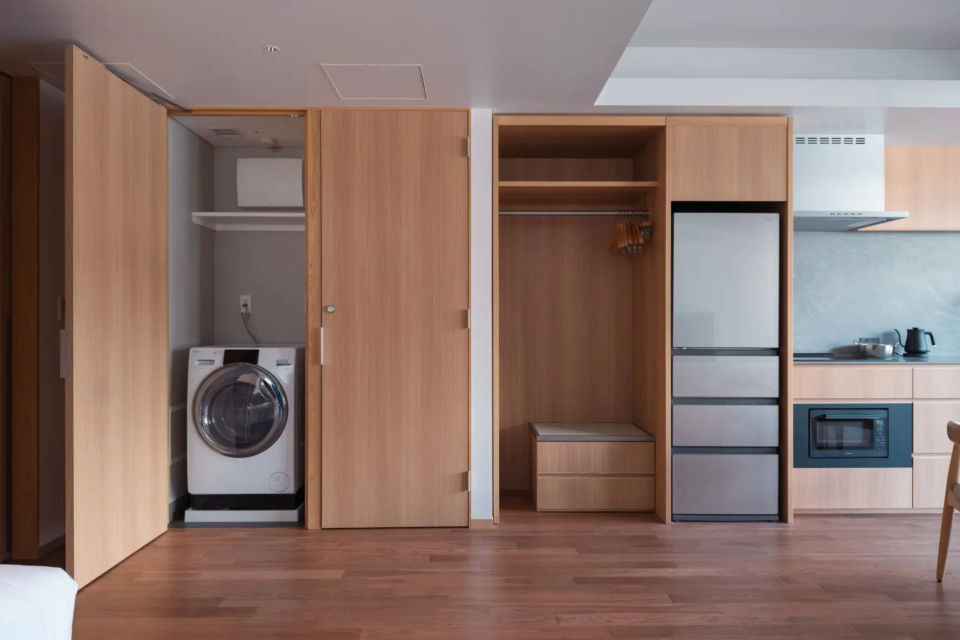 ホテルには、カーポートから直接出入りできるロッカールームや、客室に乾燥機付き洗濯機を完備。また、ギアの返却もホテルで完結。ゲレンデをご堪能いただいたあともスムーズな導線で、片付けのストレスを最小限に抑えます。