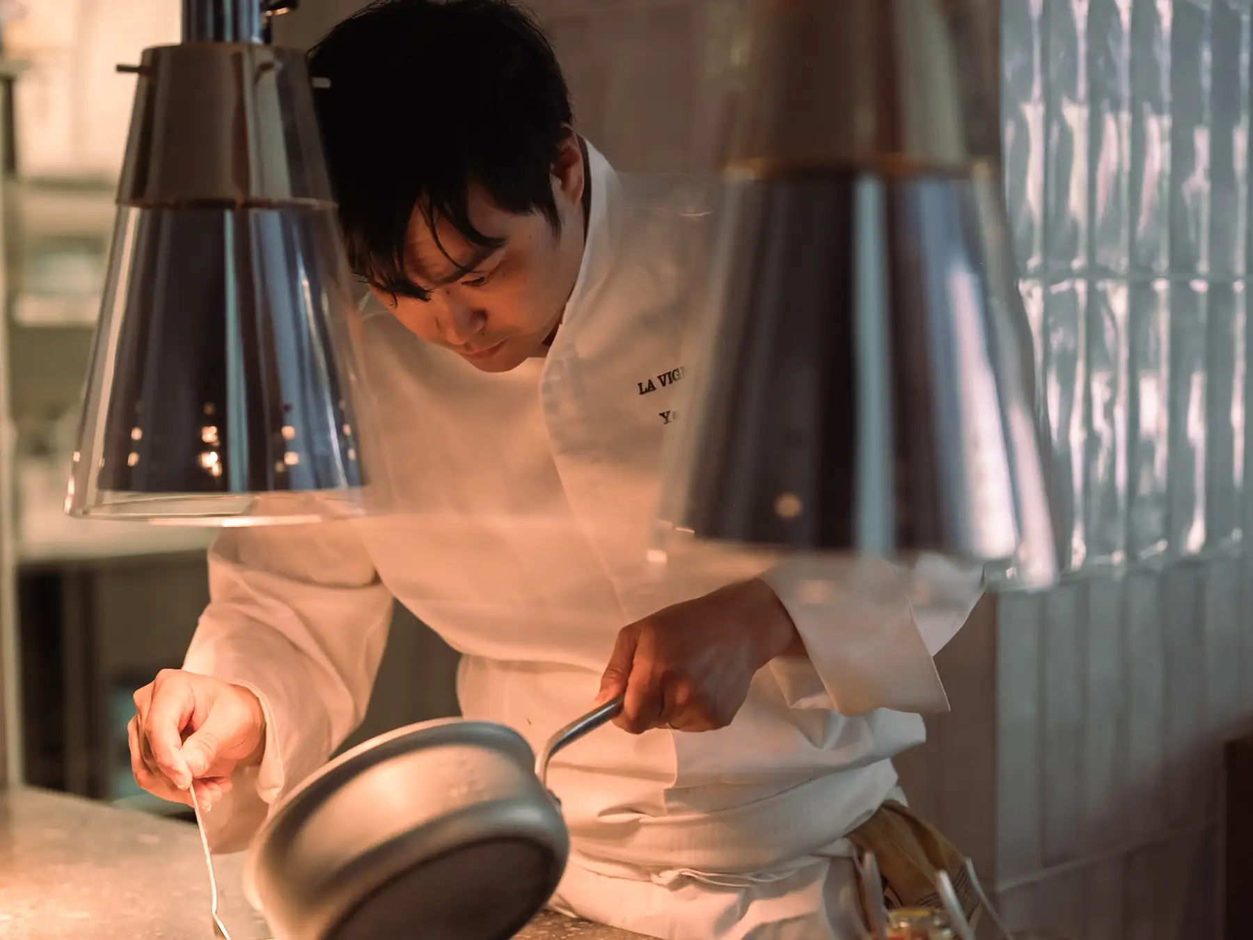 1988年生まれ、高知県出身。エコール辻大阪校を主席で卒業後、20歳で渡仏。ライオール村の名店「Michel Bras」で修行し、パリの「Septime」「Le Chateaubriand」などで研鑽を積み、いずれも部門シェフを務める。なかでも「Le Chateaubriand」在籍時の2011年には、「The World’s 50 Best Restaurants」で同店が9位にランクイン。ミシュラン三ツ星を含む計5店舗で経験を重ね、帰国後は複数のレストランでシェフを歴任。2025年4月より株式会社温故知新に入社し、ホテル ラ ヴィーニュ白馬併設レストラン「LA VIGNE DINING FÛDO」の料理長に就任。