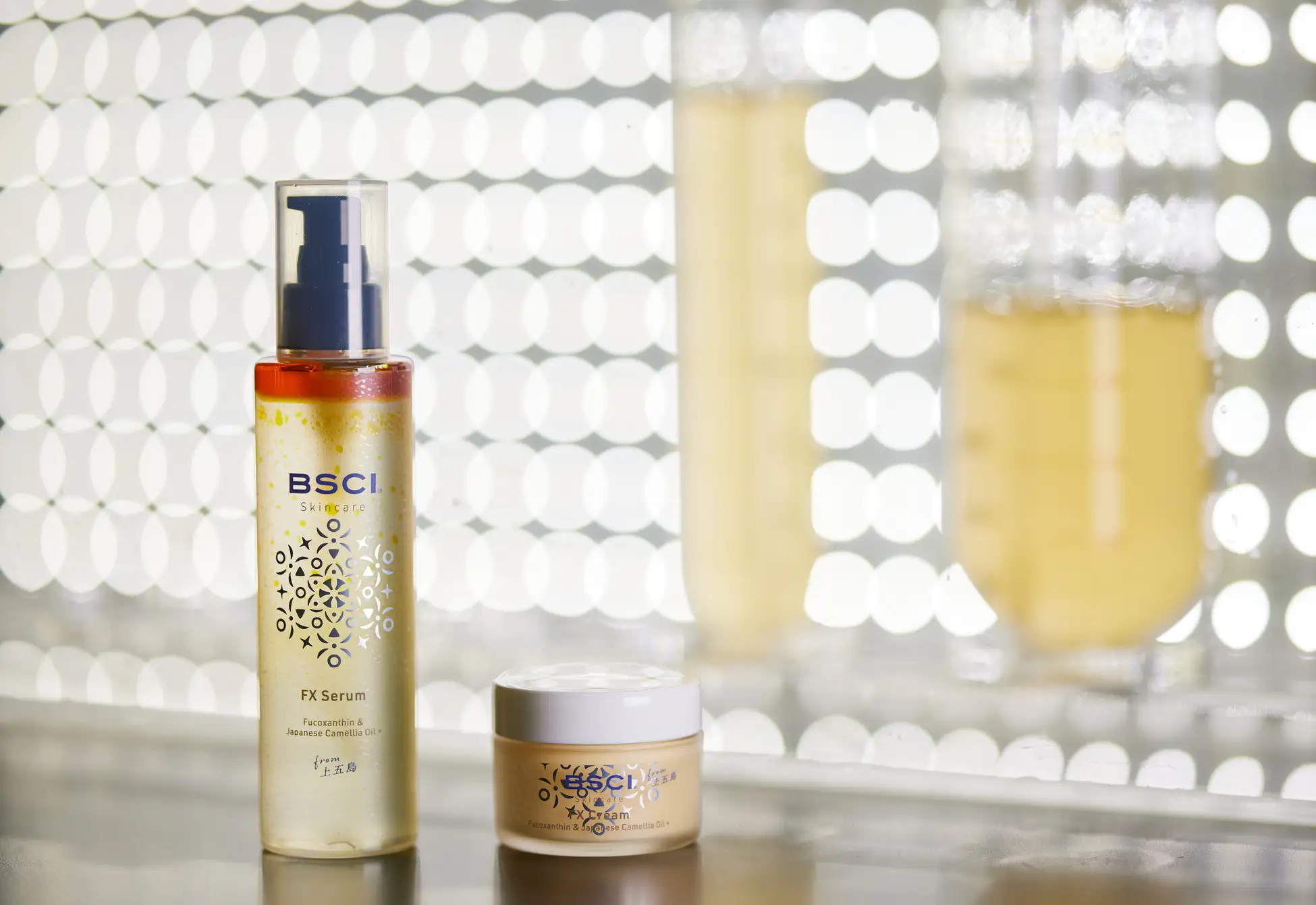 BSCIは、五島列島・上五島に拠点を構え、海の微細藻類由来成分に着目したスキンケアを展開するブランドです。ブランドの核となるのは、微細藻類の培養から得られる天然色素成分「フコキサンチン」。五島の澄んだ水環境のもと、陸上で培養・抽出されるこの成分は、海の生態系に依存しない持続可能なアプローチから生まれました。