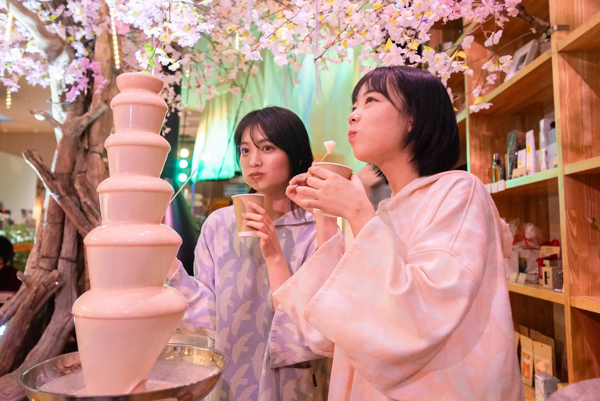 真っ白なホワイトチョコレートと桜を掛け合わせた、見た目も華やかなチョコファウンテンが登場。新しい門出を祝う「真っ白な気持ち」を、旬のいちごなどの甘いスイーツにたっぷりつけてお楽しみください。