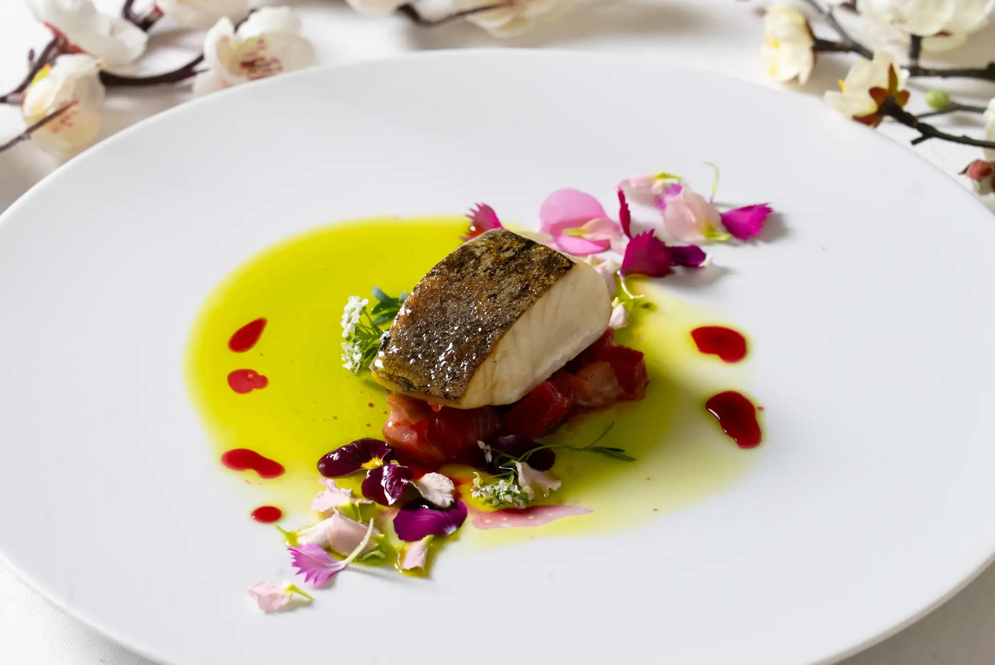 ・鰆のポワレ 梅ソース・梅酢・春菊オイル