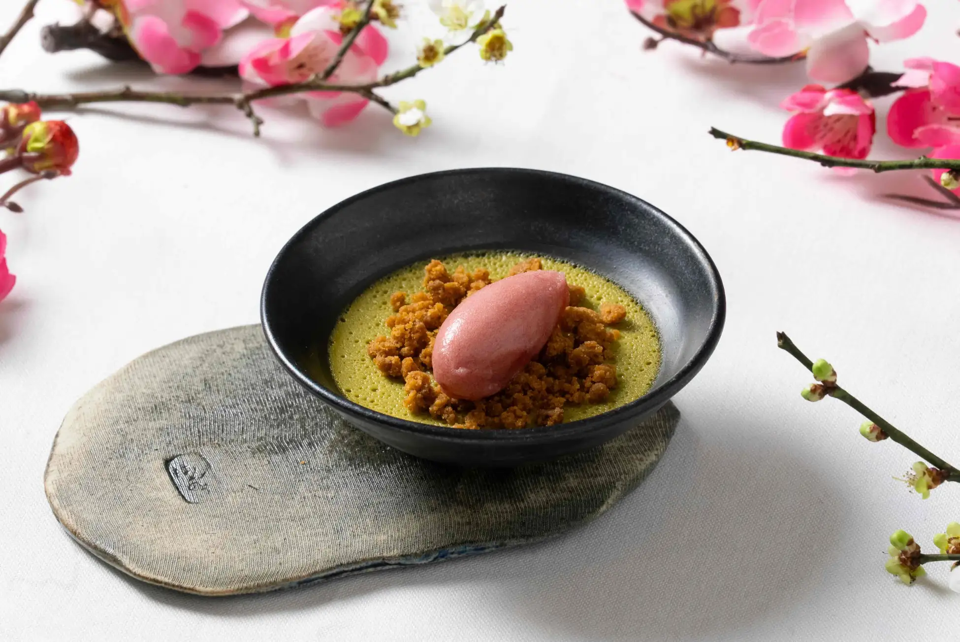 旬食材と梅を巧みに組み合わせた、2カ月限定の料理長特製フルコース。“梅の1年の移ろい”をテーマに、コース全体で梅の多彩な表情を感じられる構成となっています。