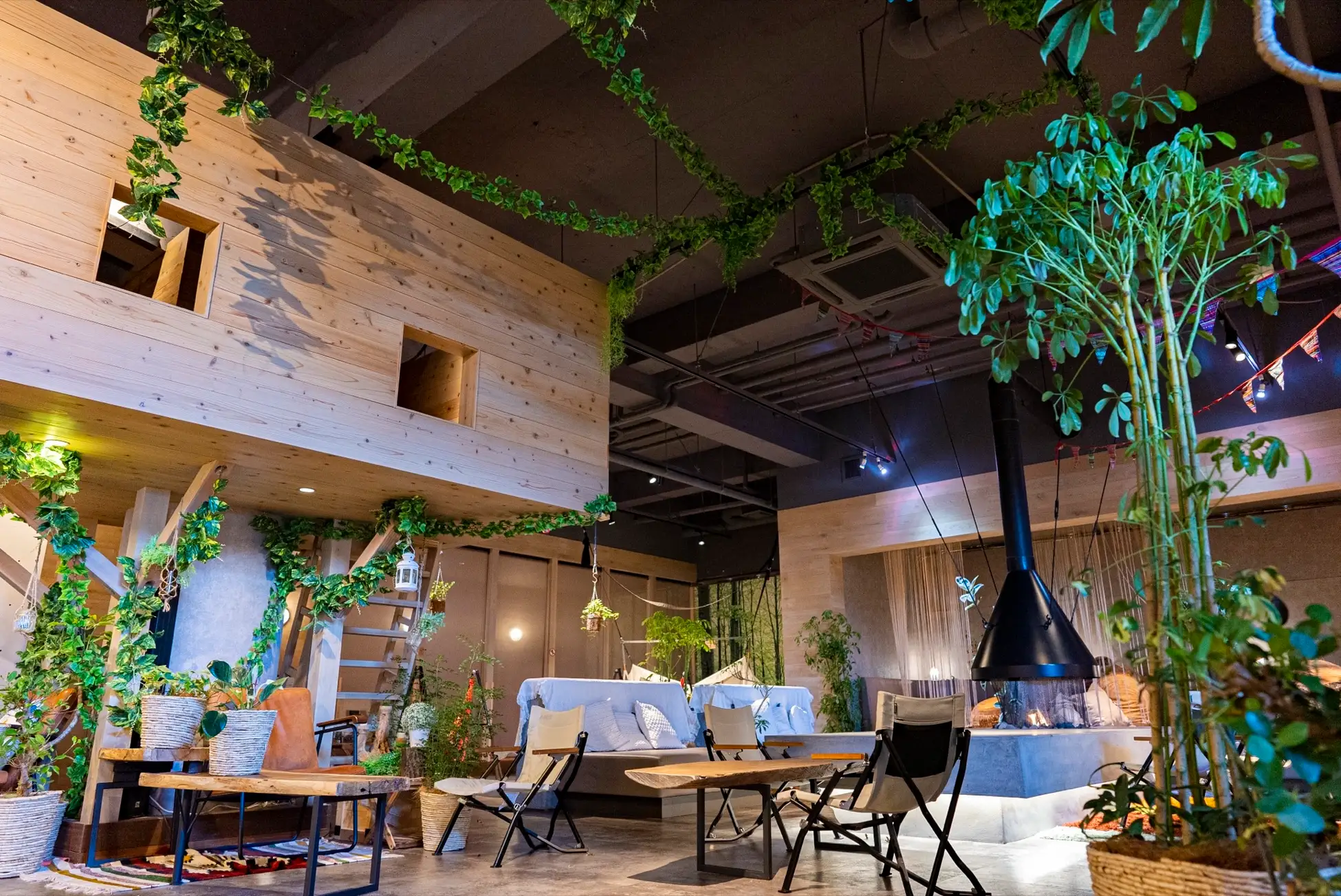 コンセプトは「カラダと心が晴れる庭」。充実のおふろ・サウナ、採れたて野菜たっぷりのごはん、裸足で過ごせる緑豊かなラウンジでお庭にいるようにくつろぎ、心身共に晴れわたる1日をお過ごしいただけます。