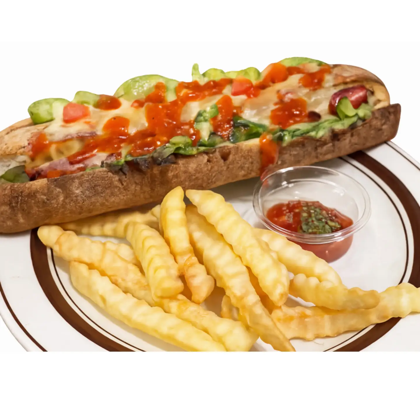 ソーセージ2本を使用したボリューム感のあるホットドッグ。