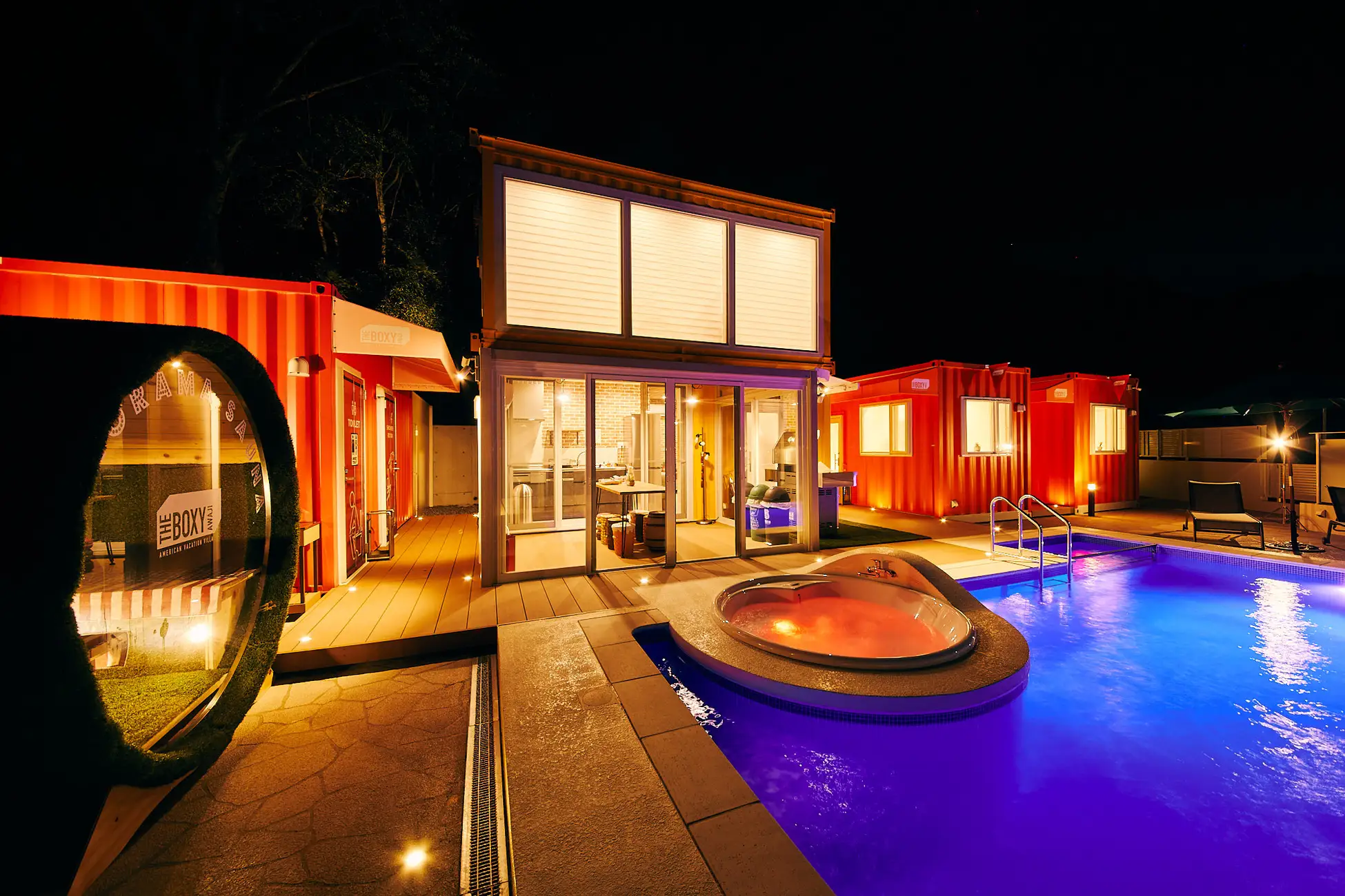 「THE BOXY AWAJI」は、プール・サウナ・ジェットバスを備えた、アソビゴコロあふれる一棟貸切のプライベートヴィラです。