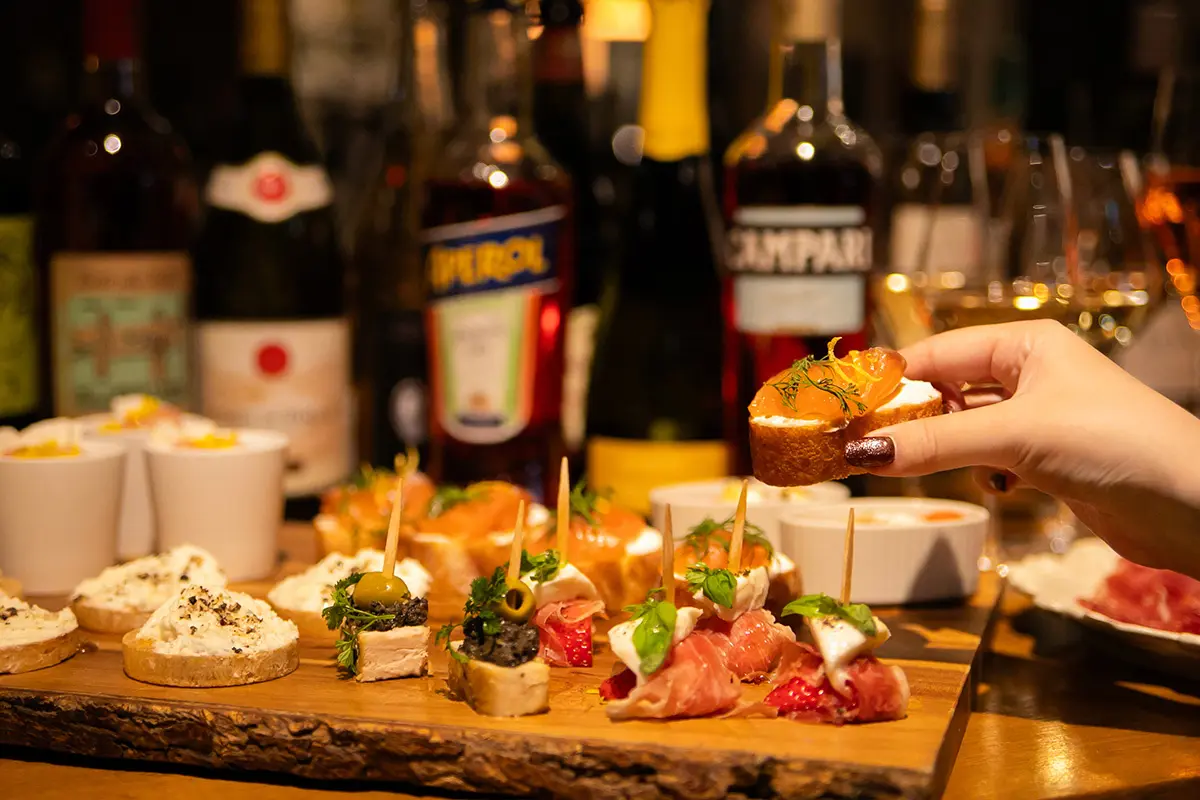 立食スタイルのスペシャルバーフードと、ワインやオリジナルカクテルなどのフリードリンクをご用意。