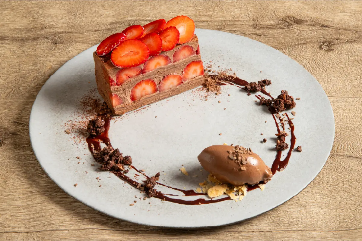 ◆冬苺とガナッシュクリームのミルクレープ・ショコラ チョコレートアイス添え