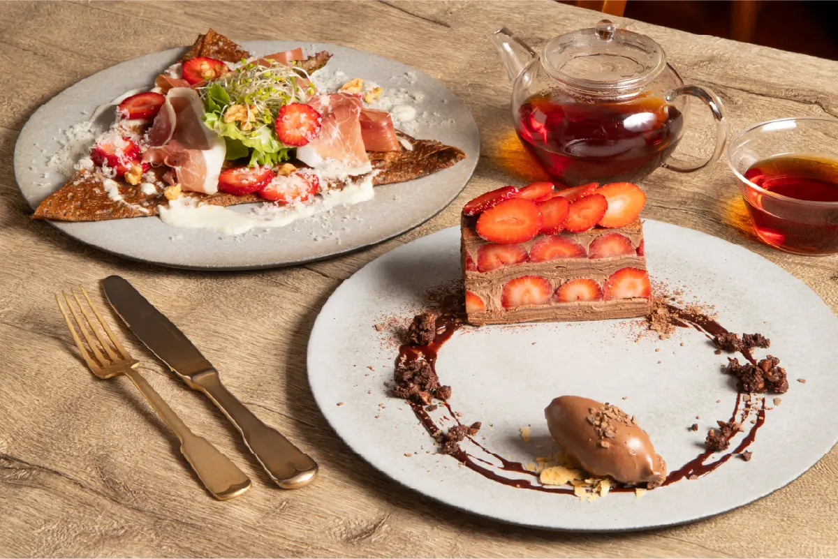 CREPE & GALETTE TOOTH TOOTHでは、フランス発祥のお食事クレープ “ガレット” と、季節のフルーツなどを使った “クレープ” をより一層皆様にお愉しみいただけるよう、上質でバラエティ豊かなラインアップをご用意しております。