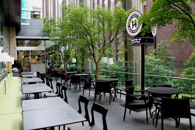 緑豊かな丸ノ内のオアシス、爽やかなテラスで味わうクラフトビールとシェフこだわりの遊び⼼溢れる ⼀品。 近隣のオフィスワーカーに愛されるイチヨン。 COEDOビールをはじめ、7種類の樽⽣ビールを お楽しみいただけます。