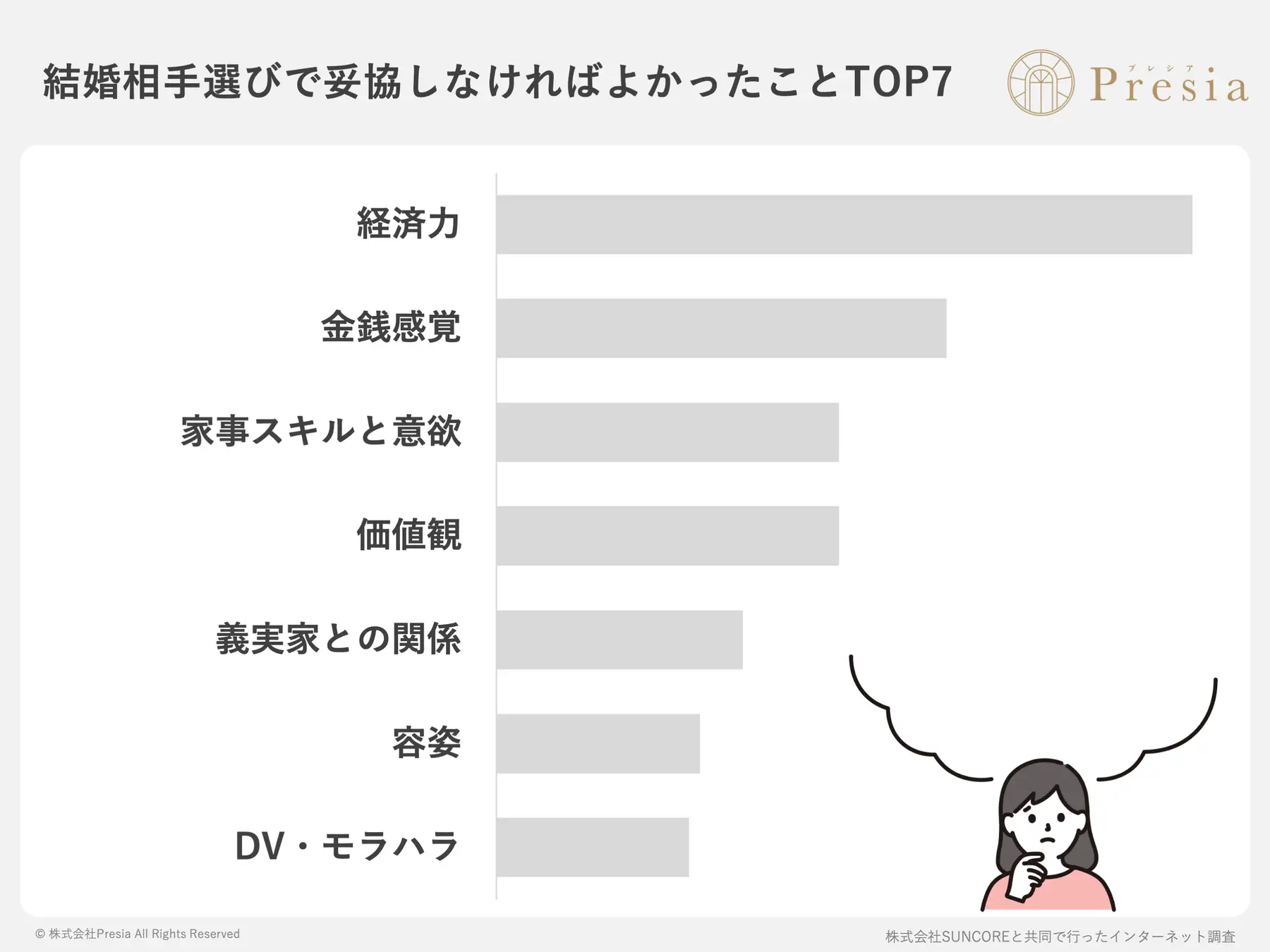 ※掲載しているグラフや内容を引用する場合は、「結婚相談所Presia」と明記し、こちらのページ(https://presia.jp/what-is-important/)へのリンク設置をお願いします。