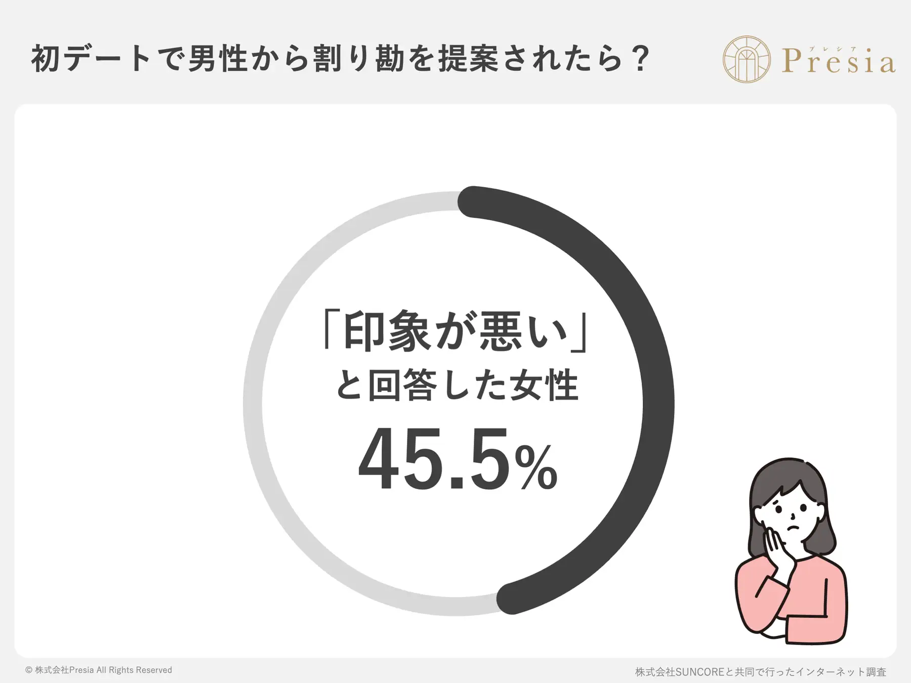 • 初デートでの「割り勘」提案に、45.5%が「印象が悪い」と回答