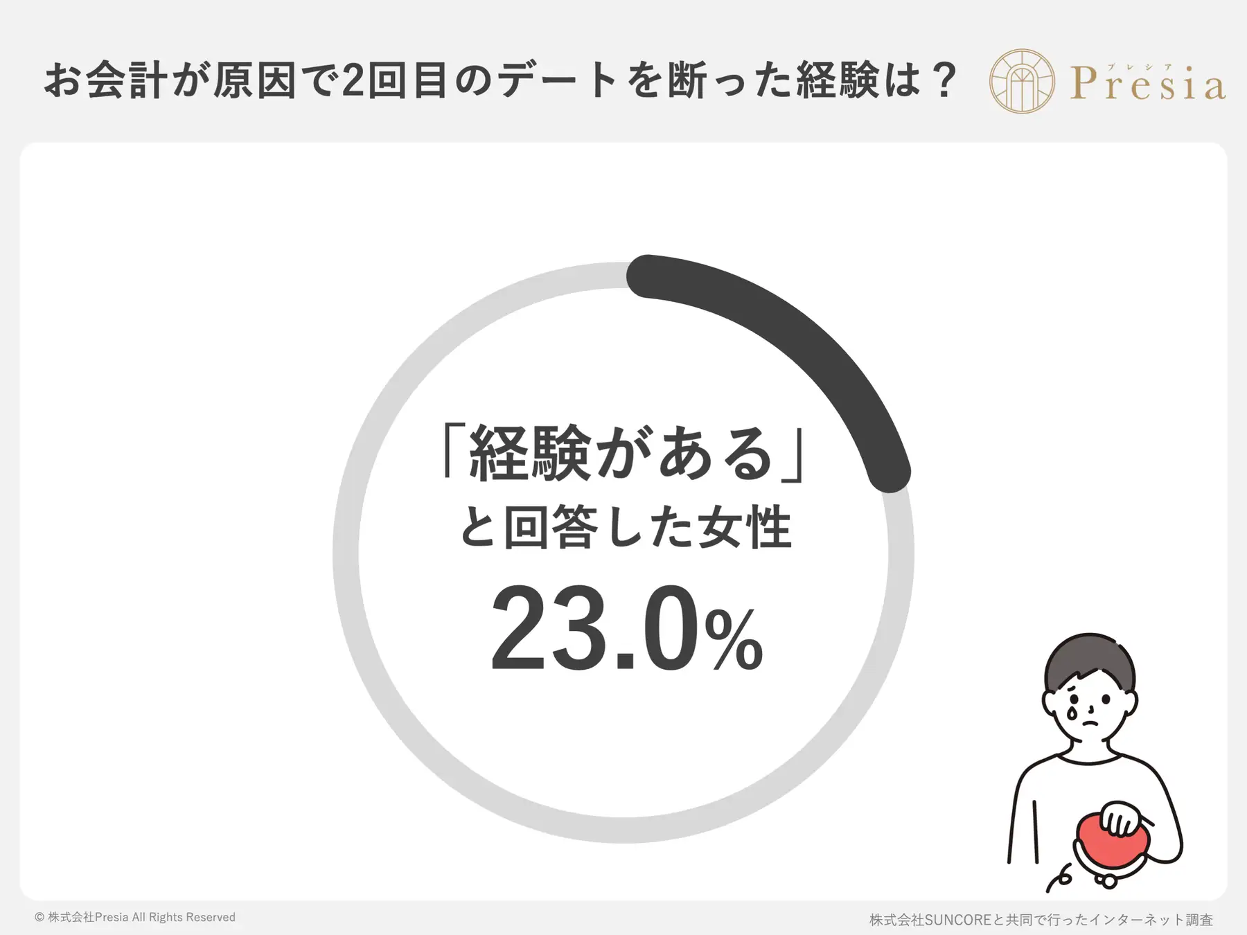 • 23%が会計が原因で「2回目のデートはない」と判断。決め手は金額より「態度」