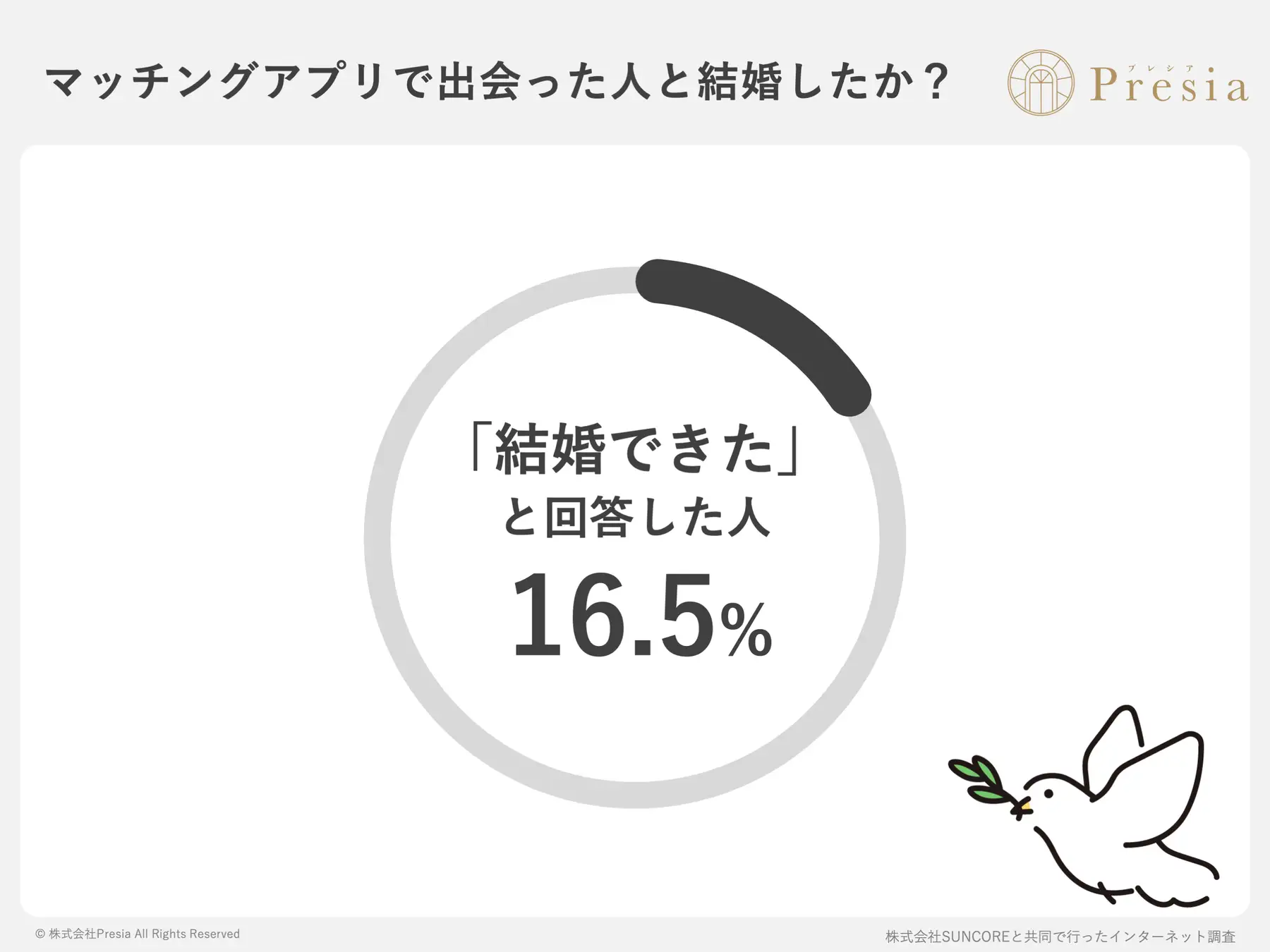 最終的に、利用者全体158名のうち「結婚できた」と回答した人は26名(16.5%)に留まり、出会いの数は多くとも、結婚というゴールに到達する割合は決して高くないことが明らかになりました。