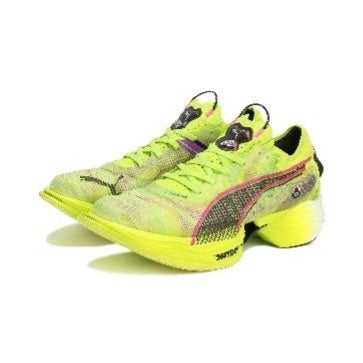 「FAST-R NITRO™ ELITE 2 EKIDEN RUSH」は、前モデルの「FAST-R NITRO™ ELITE」に比べ、エネルギーを蓄える力が22%、反発性が46%アップし、より軽量でパフォーマンス効率の高い走りを実現します。特徴的な2分割されたミッドソールとむき出しのカーボン仕様の「PWRPLATE(パワープレート)」がつま先まで突き抜けた構造が特徴的なモデルで、この独特なプレート構造により、地面との接地面が増え、ストライドを伸ばし、足を前に推進する力をより高めます。さらに、アッパーには、プーマ独自の軽量ウーブン素材「ULTRAWEAVE(ウルトラウィーブ)」が採用され、前モデルより20%軽量化されています。