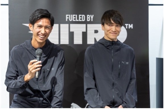第一部の商品説明会には、プーマ契約アスリートの中西亮貴選手(トーエネック陸上競技部)、米満怜選手(コニカミノルタ陸上競技部)が登壇、第二部のトライアルセッションには、SGホールディングス陸上競技部に所属する佐藤悠基選手が特別ゲストとして参加、「EKIDEN RUSH PACK」のなかでも、前モデルからのアップデートモデルとなる「FAST-R NITRO™ ELITE 2」について、選手視点でのシューズの着用感、レースにおけるシューズの重要性などを語りました。