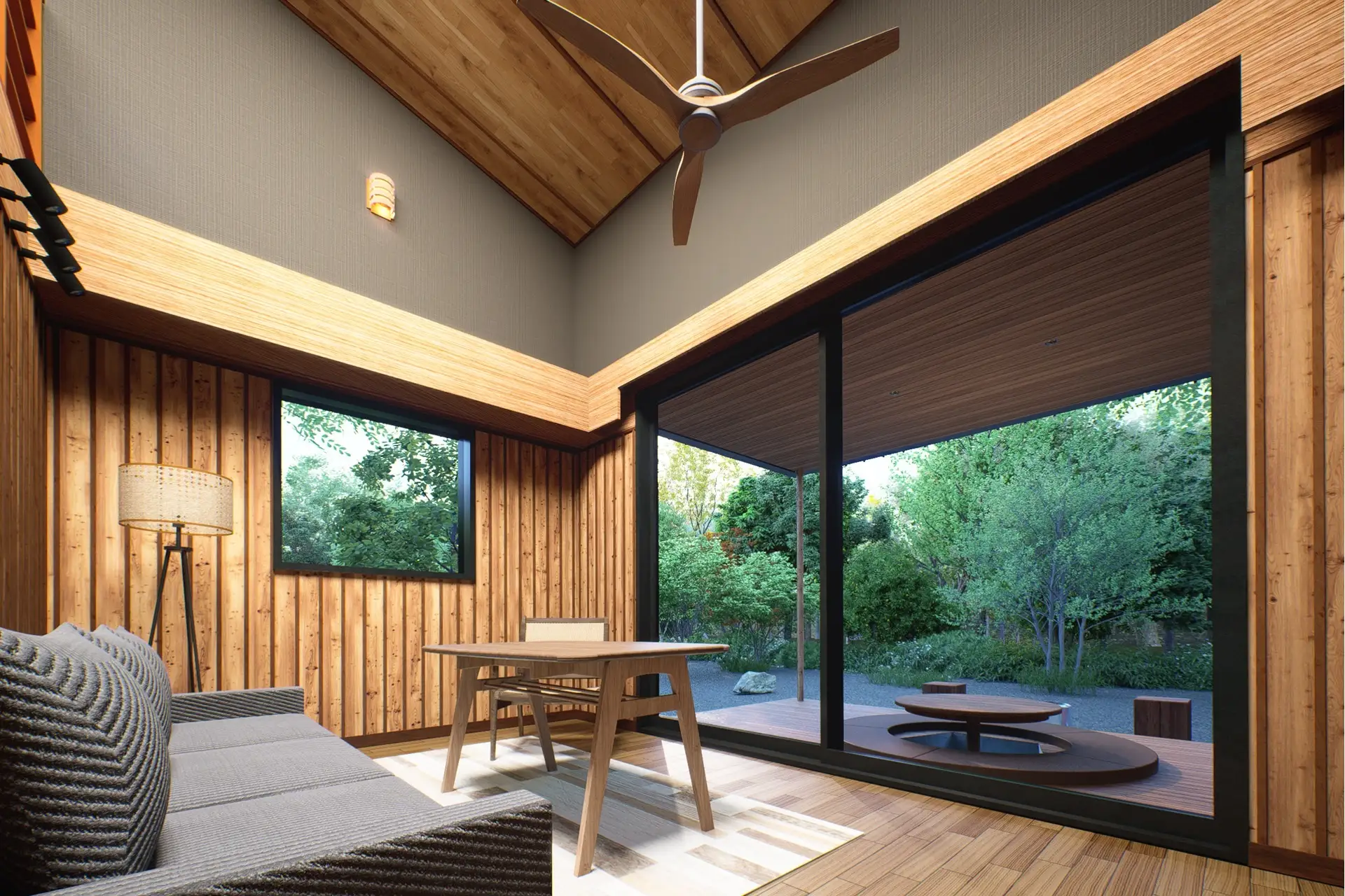 2026年3月16日オープン予定の「ソラトニワ別邸」は1棟あたり約150㎡以上の広さを誇る完全独立型プライベートヴィラです。