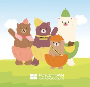 カカオポッド(チョコレートの原料・カカオの実)の帽子やパンツがチャームポイントの、施設のマスコット“カカオクマ”。楽しいことが大好きで好奇心旺盛!不定期で施設に現れて、遊びに来たお客様とお友達になっちゃいます。ロイズの公式Instagram(https://www.instagram.com/royce_jp/)では、カカオクマが施設で過ごすお茶目な様子を定期的に発信していますので、ぜひフォローしてチェックしてください。