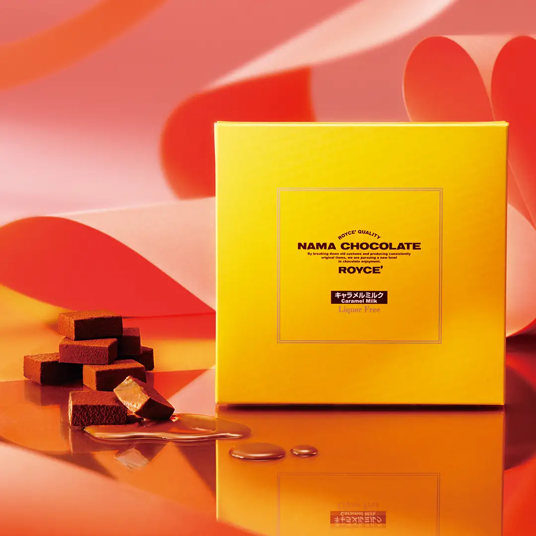 キャラメルの濃厚で香ばしい甘さがミルクのコクとまろやかにとけ合う、お酒不使用の生チョコレート。ココアパウダーが軽やかに風味を引き締めます。子どもから大人まで虜になる、印象的なキャラメルの風味が魅力です。