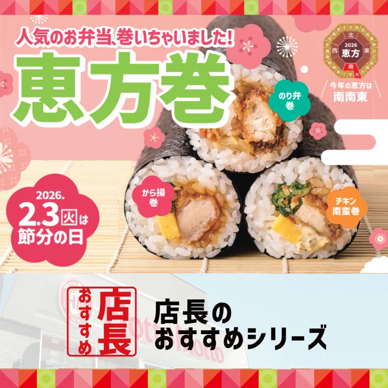 「ほっともっと」全国の店長が選んだ、『恵方巻シリーズ』おすすめポイント!1位『定番人気のお弁当を恵方巻スタイルで味わえる』