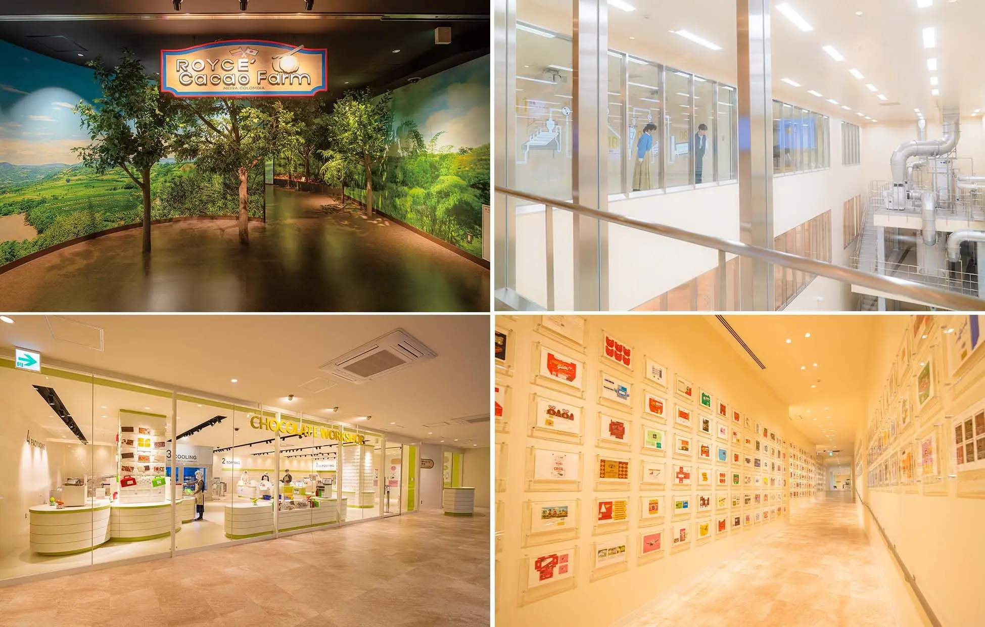 “チョコレートを 旅しよう”をテーマに、ロイズのカカオ栽培からチョコレートづくりまでを、様々な展示や体験を通して楽しめる体験型施設。1Fにはロイズタウン工場直売店を併設し、定番人気のチョコレートから同店限定のパンやピザ、ソフトクリームなども販売しています。