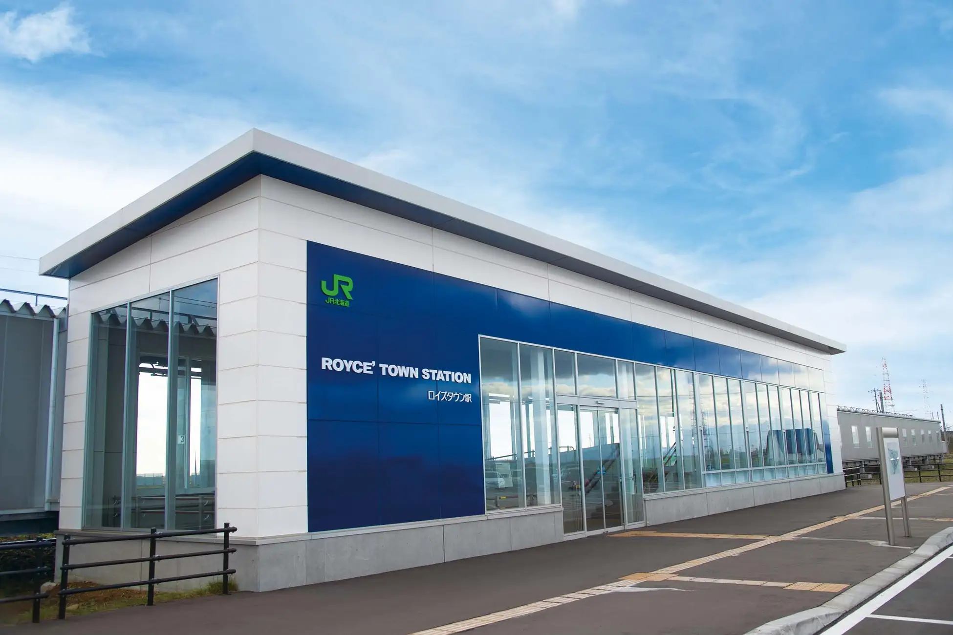 \ロイズタウン駅では、とべのすけがお出迎え!記念撮影を楽しんで/